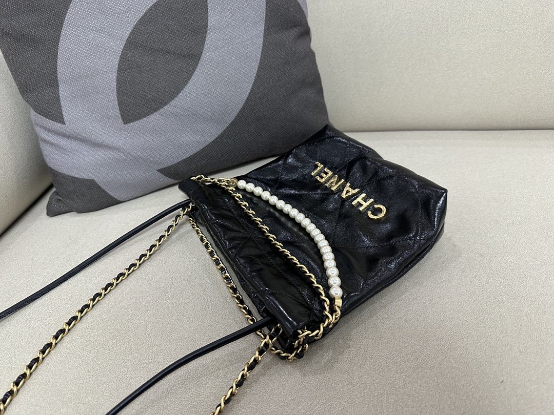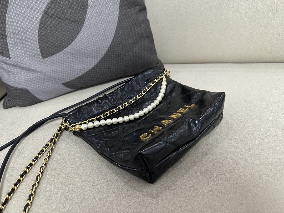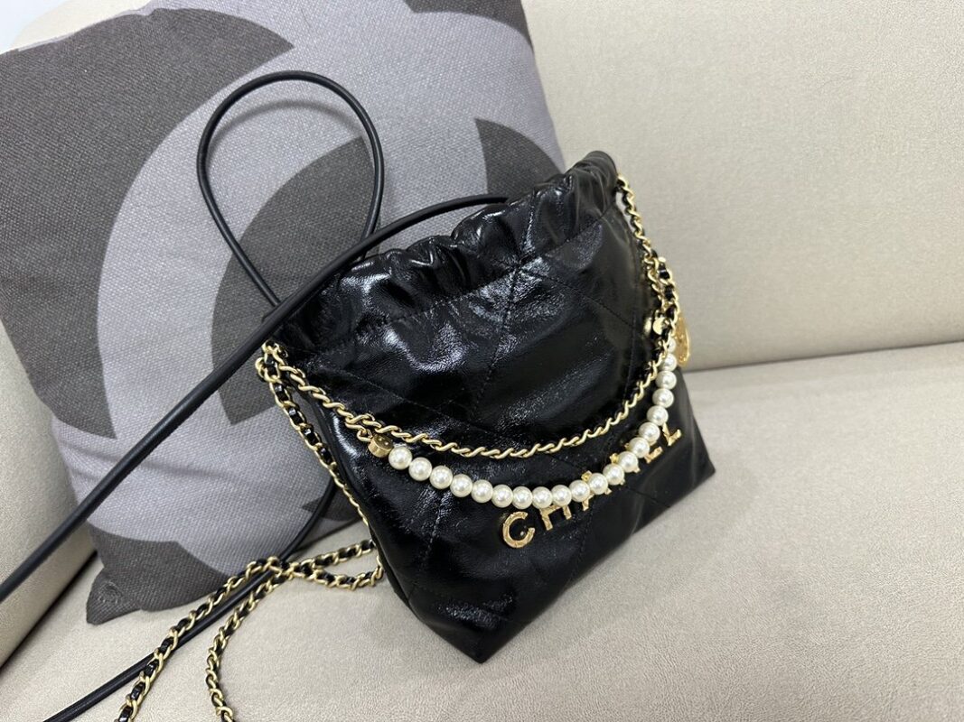 Chanel 23S Mini Pearl 22bag Jennie same style. Casual and a little small and delicate. Pearl chain embellishment, the upper body has the feeling of a rich family. Mini Pearl𝟐𝟐 shopping bag. “The most, the most Fire’s “Trash Bags! !