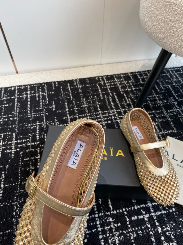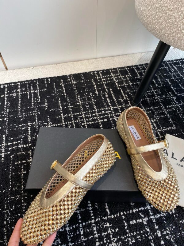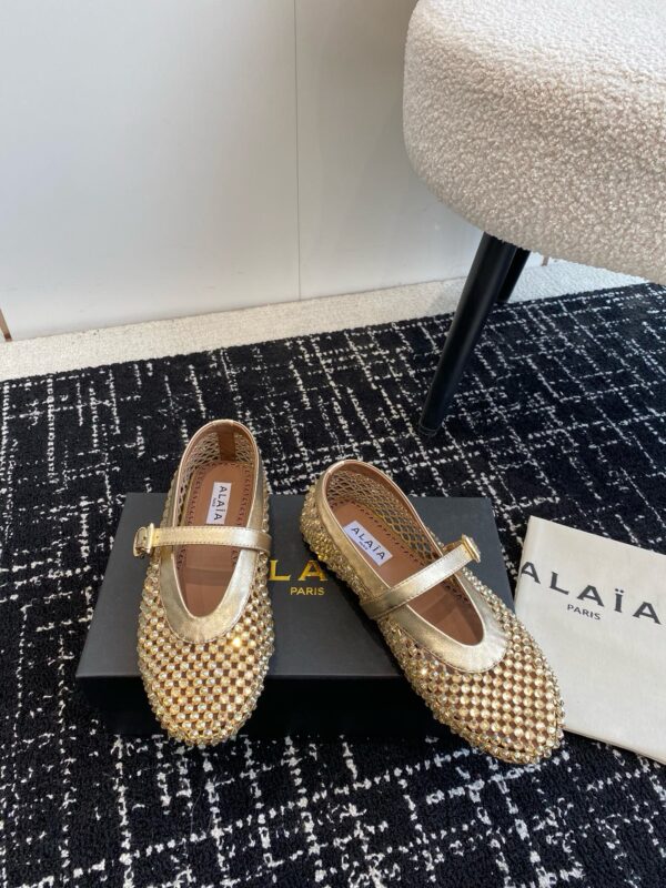 Alaia’s new classic ballet shoes blend the dynamic charm of ballet into daily life, and use modern touches to depict the classic silhouette of dance shoes! Black diamond-embellished leather ballet shoes, inspired by classic Japanese shoes. Rounded hardware is embellished on the upper, which is simple but not complicated and suitable for a variety of styles, making it smart and fashionable in every step.