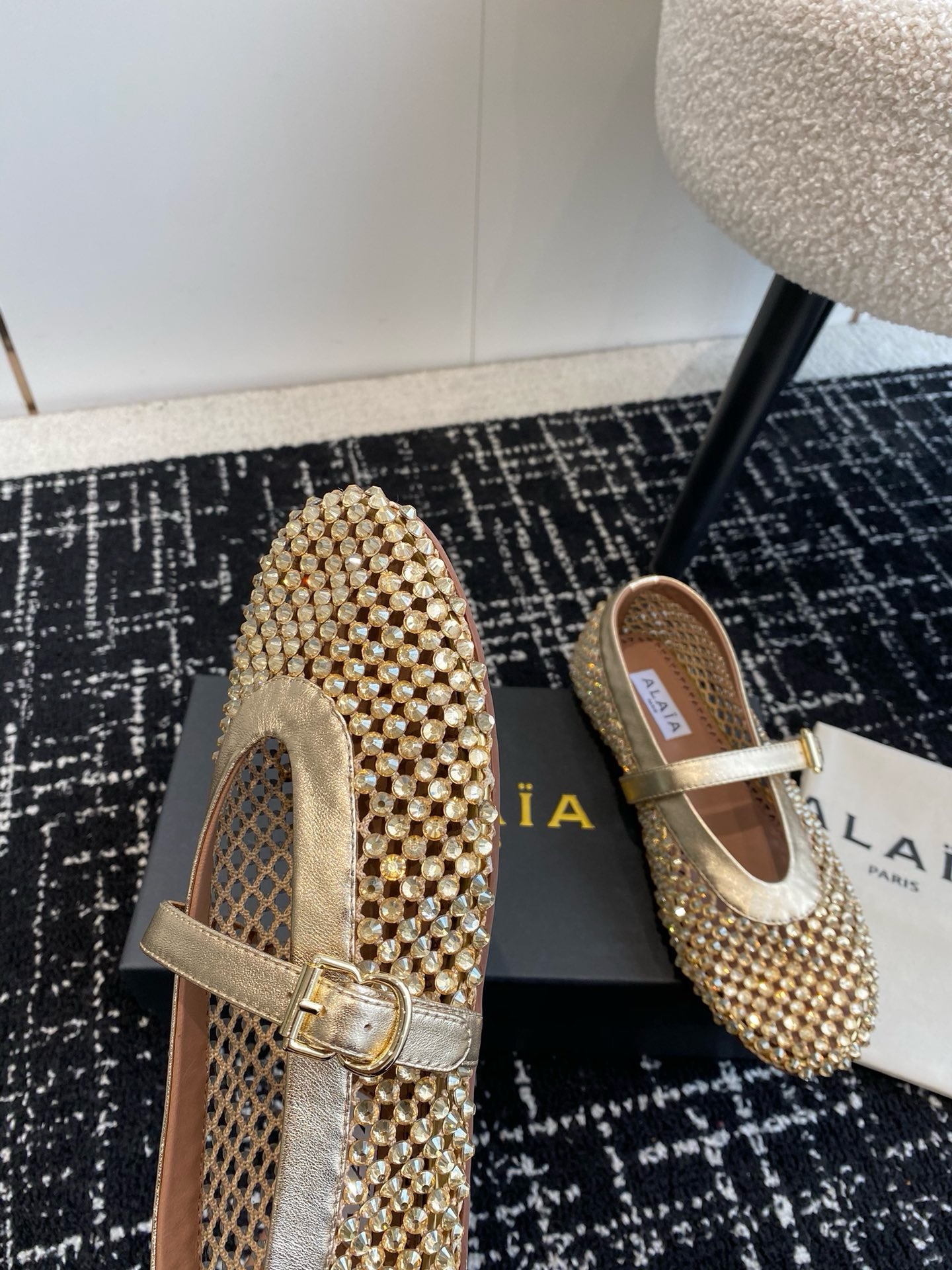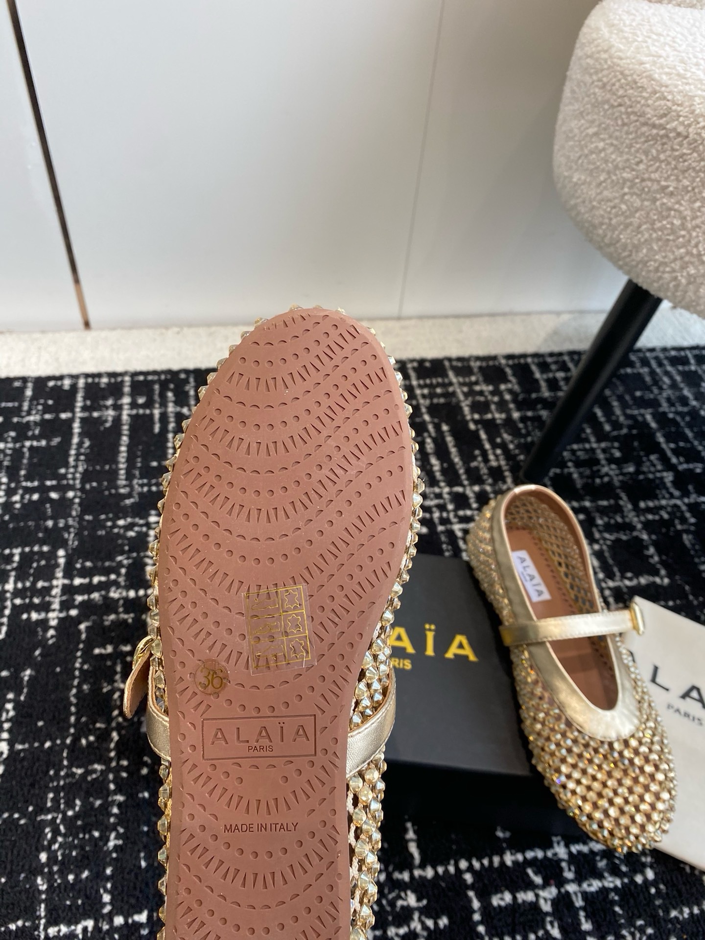 Alaia’s new classic ballet shoes blend the dynamic charm of ballet into daily life, and use modern touches to depict the classic silhouette of dance shoes! Black diamond-embellished leather ballet shoes, inspired by classic Japanese shoes. Rounded hardware is embellished on the upper, which is simple but not complicated and suitable for a variety of styles, making it smart and fashionable in every step.
