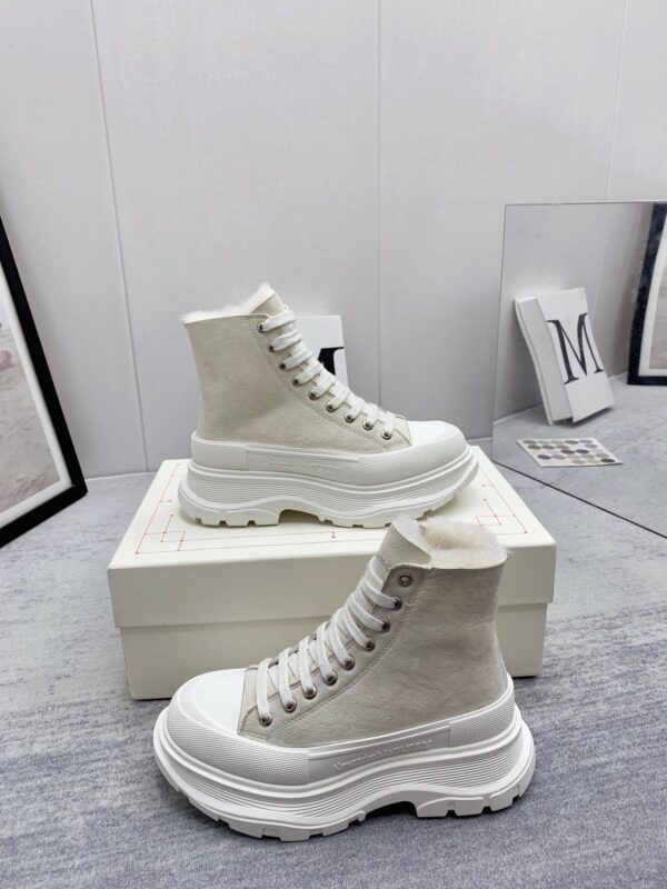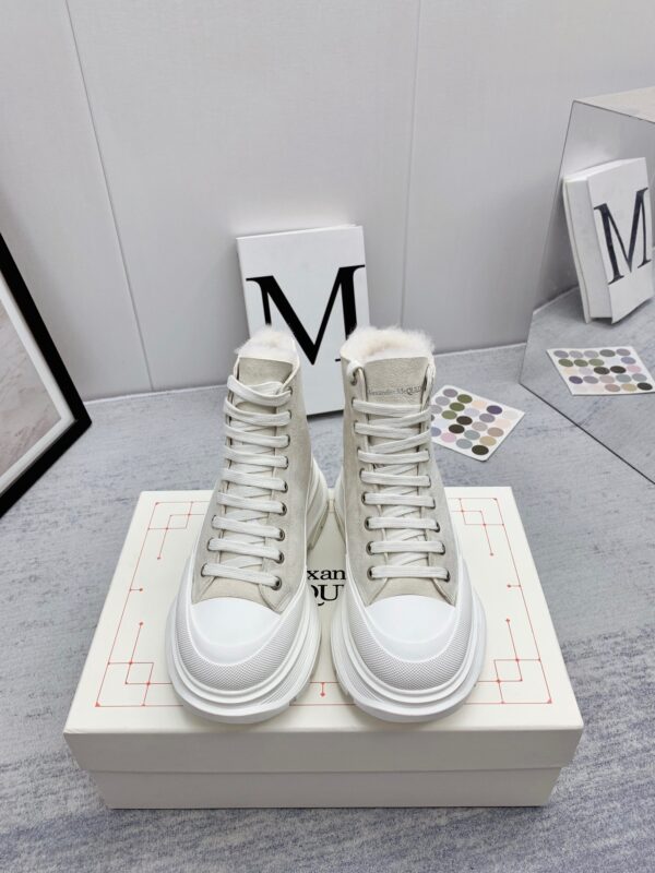 Mc Queen McQueen new couple Fur shoe integrated, super warm, fashionable and comfortable, I couple models. The unique personality of the shoes adds to the full charm, and the upper feet are super stylish. Warm in color. The design of the round head allows the toes to be completely released. Outsole: The original mold-opening vacuum outsole. Sizes: 35-44