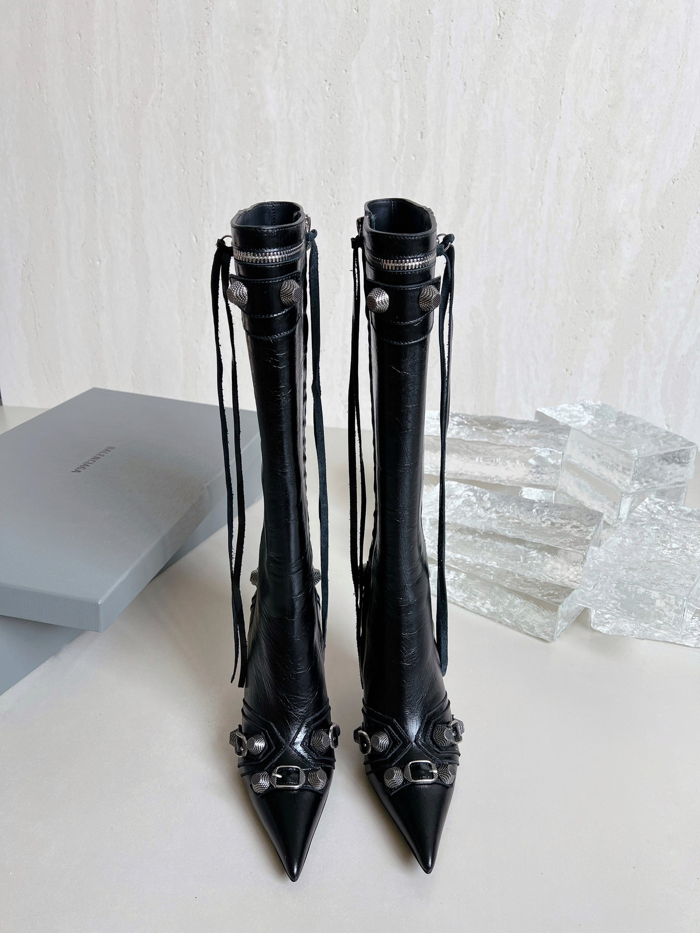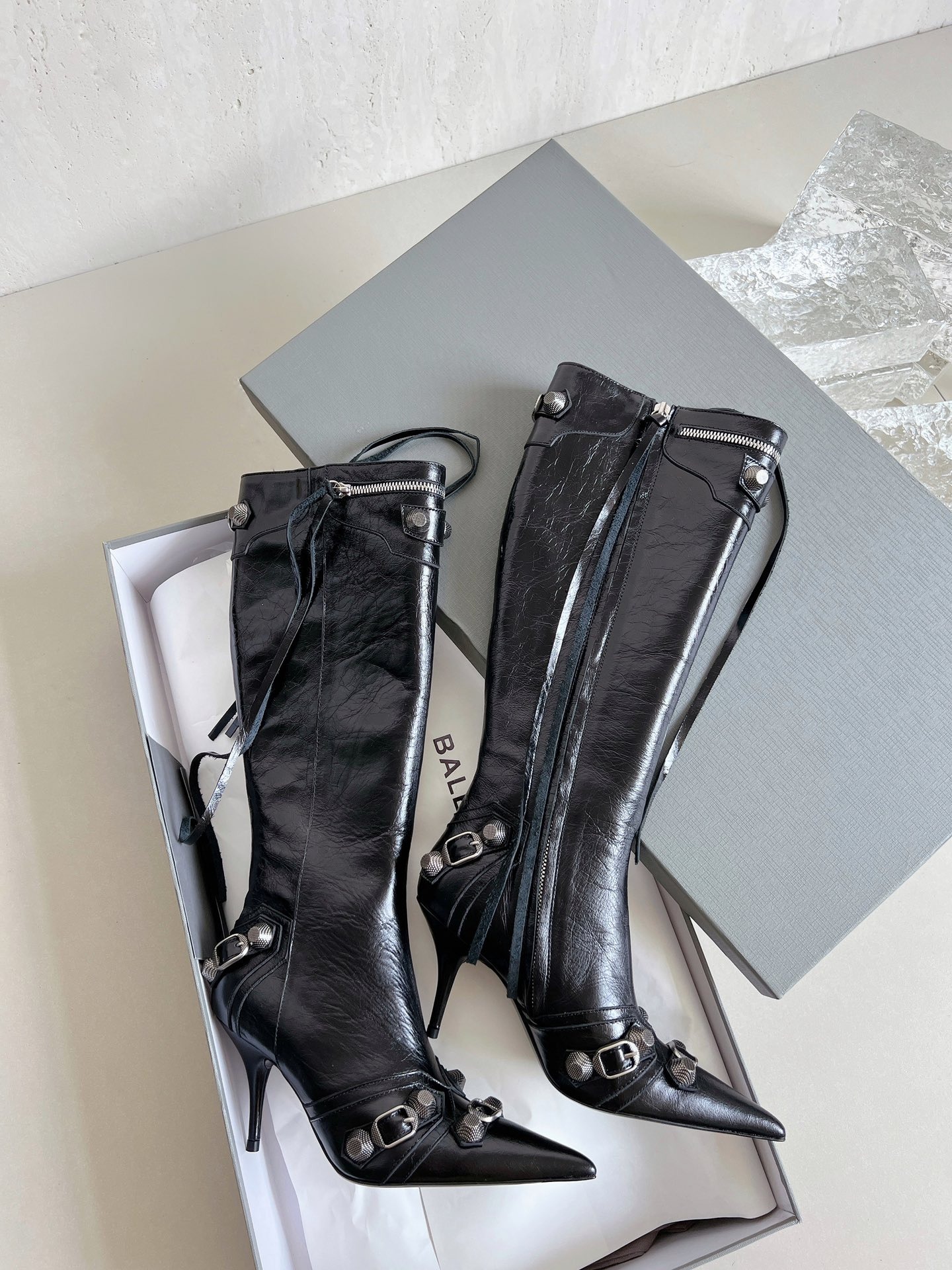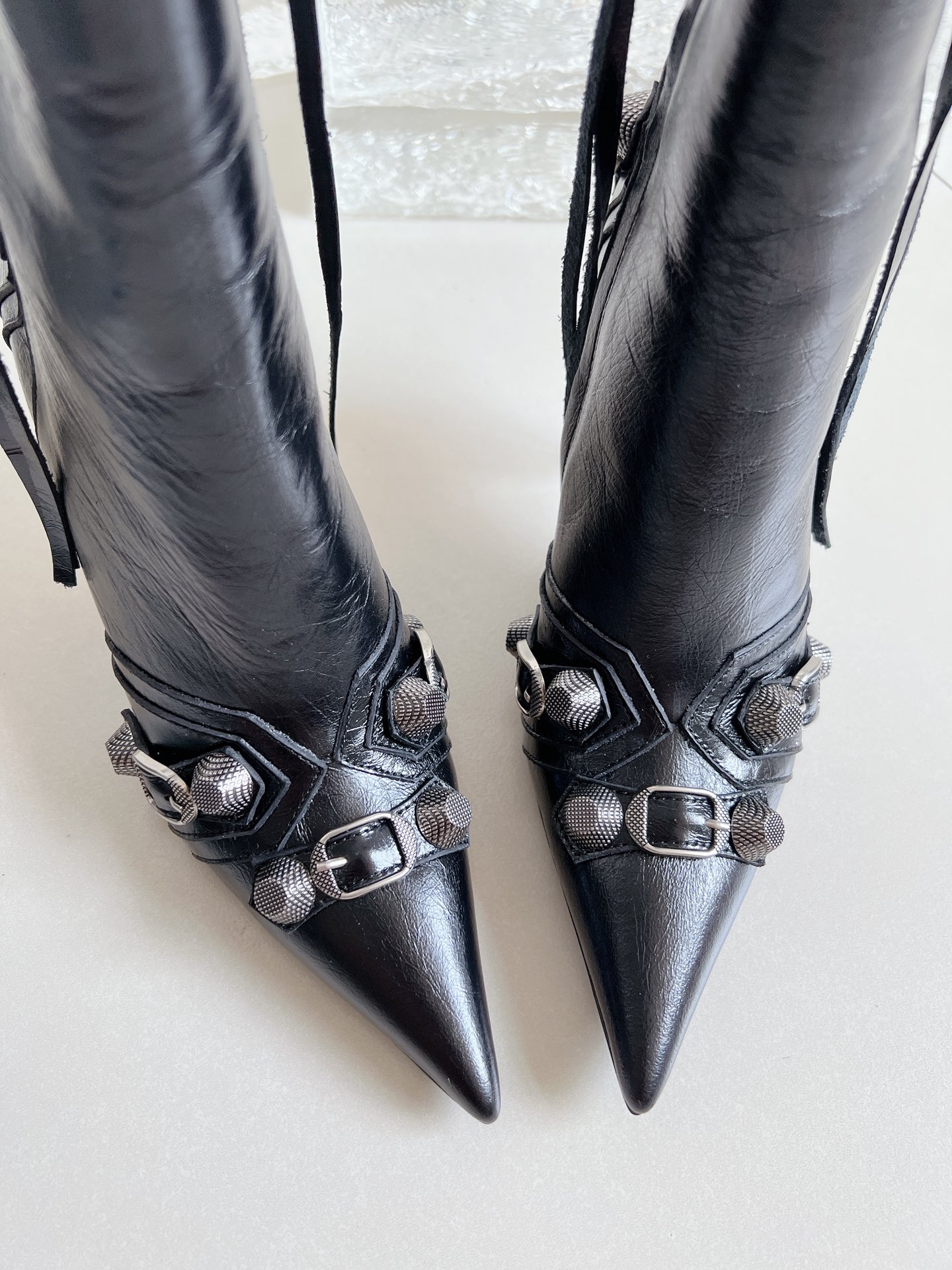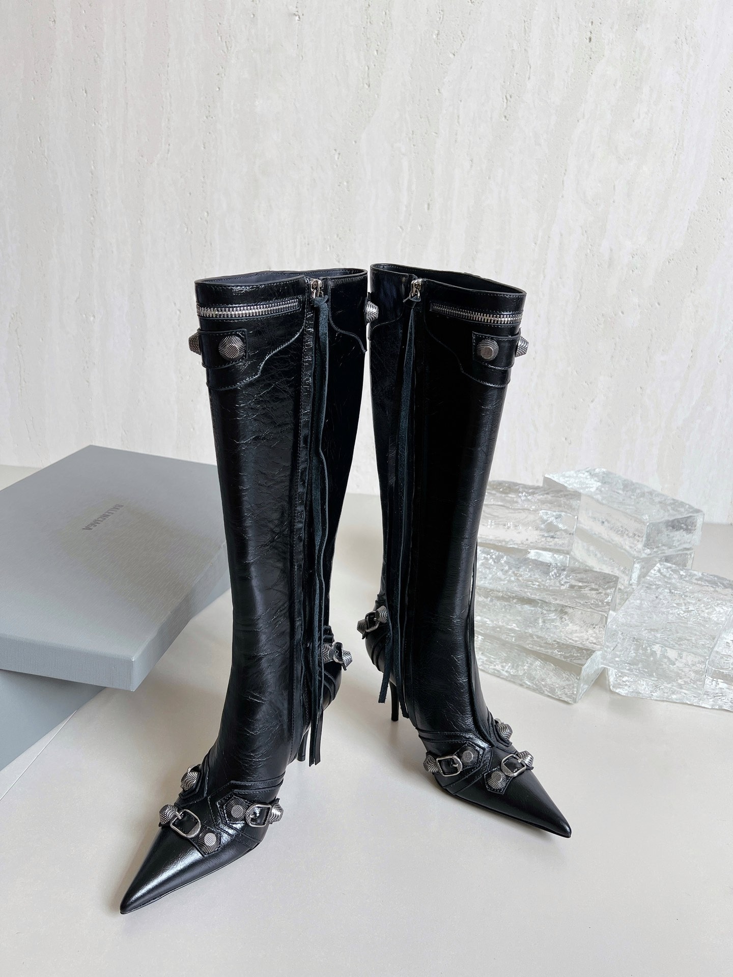 Balenciag ‘Paris World’ studded punk high-heeled biker boots Balenciaga’s knee-high boots are the features of the le cagole underarm bag. Metal rivet elements are really absolutely handsome. There is no resistance. No matter how long or short, there is no dead angle. Retro and pioneer harmonious coexistence. Soft and don’t worry about uncomfortable pants. Upper: Customized imported calf leather. Inside: imported full-grain original cowhide. Sole: Imported injection-molded leather outsole Sizes: 35-40 (40 customized non-refundable