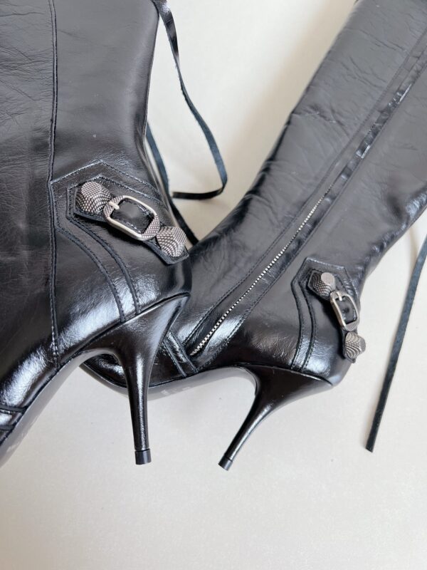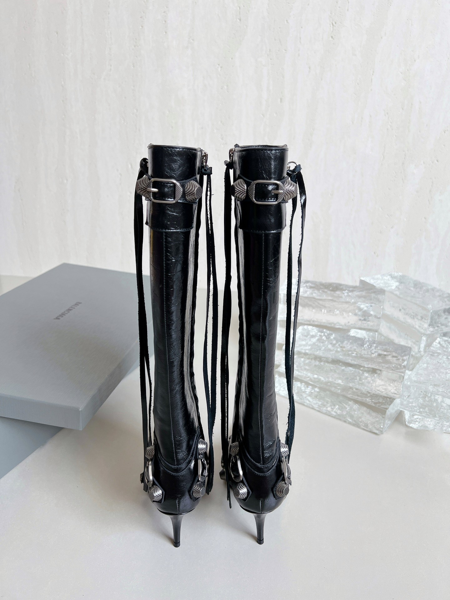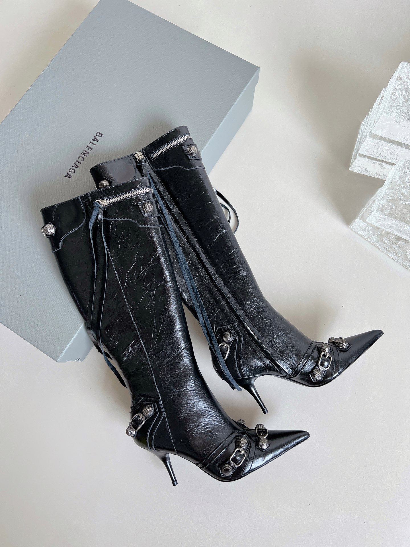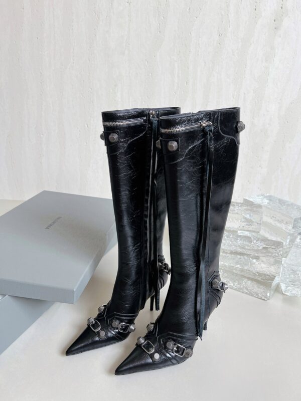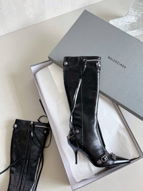 Balenciag ‘Paris World’ studded punk high-heeled biker boots Balenciaga’s knee-high boots are the features of the le cagole underarm bag. Metal rivet elements are really absolutely handsome. There is no resistance. No matter how long or short, there is no dead angle. Retro and pioneer harmonious coexistence. Soft and don’t worry about uncomfortable pants. Upper: Customized imported calf leather. Inside: imported full-grain original cowhide. Sole: Imported injection-molded leather outsole Sizes: 35-40 (40 customized non-refundable