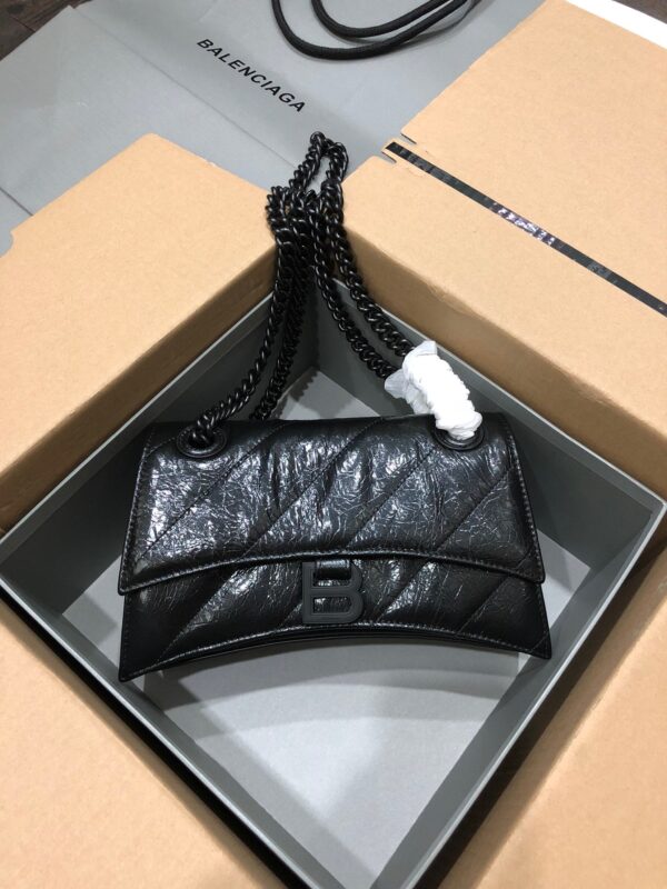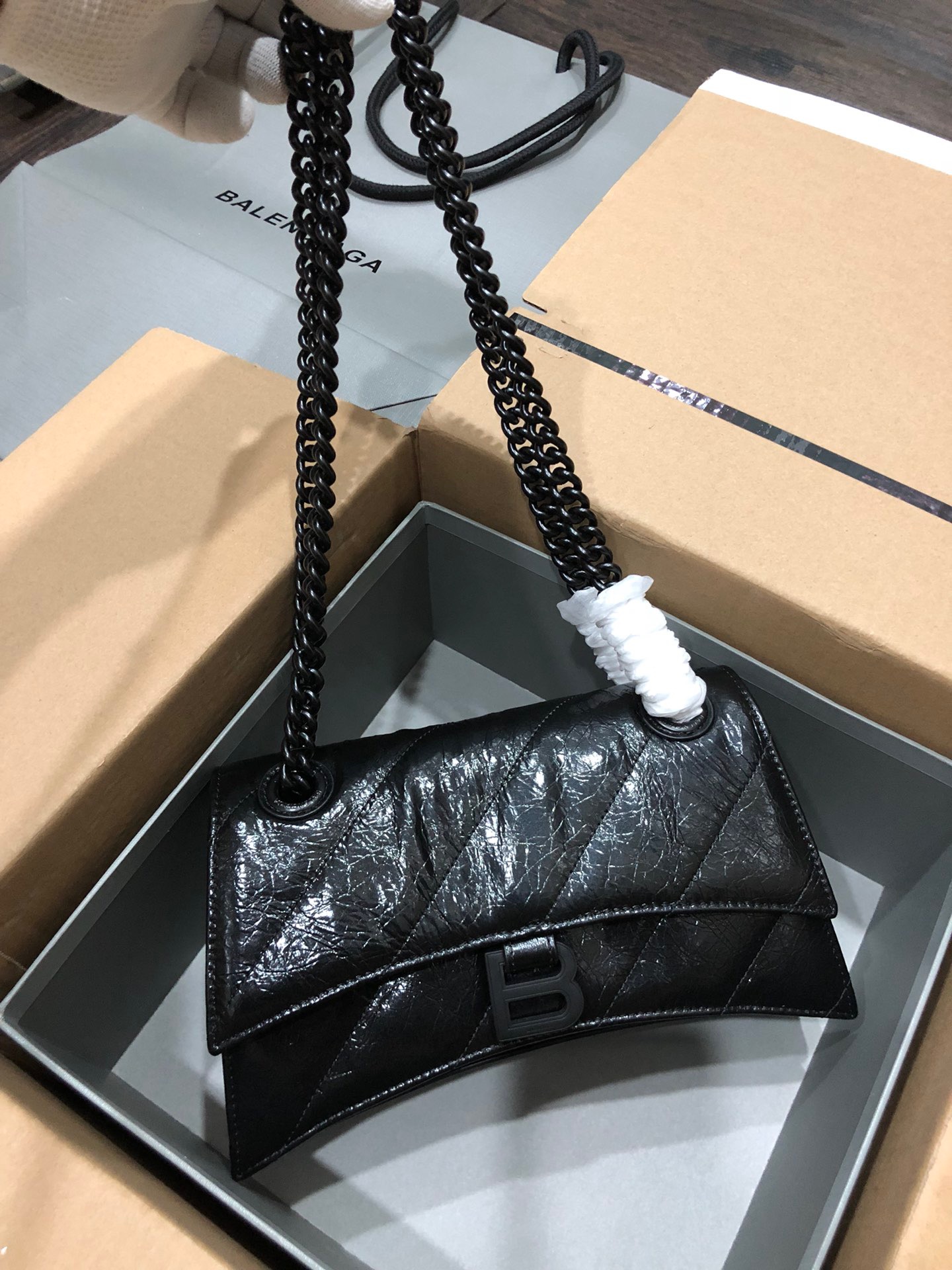 Small BlackBalenciaga Crush most Hourglass chain bag with VIP packageThe latest Crush quilted chain bag is coming. Pay tribute to the classic and unique iconic arc shape, which is very recognizable and makes people shine at a glance. Breaking the traditional rigid bag shape, soft leather, multi-layered, large capacity, shoulder straps can be switched at will, and the casual and atmospheric style is head-on.Size: bottom length 25x height 15x width 9.5cm