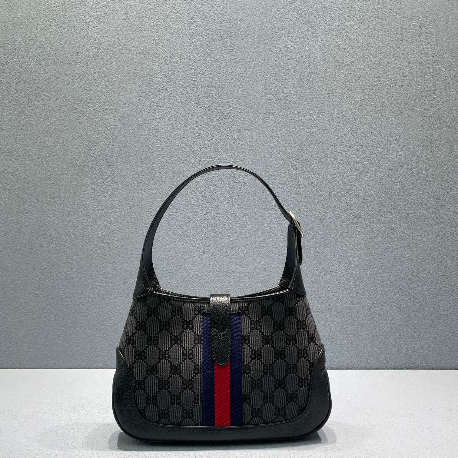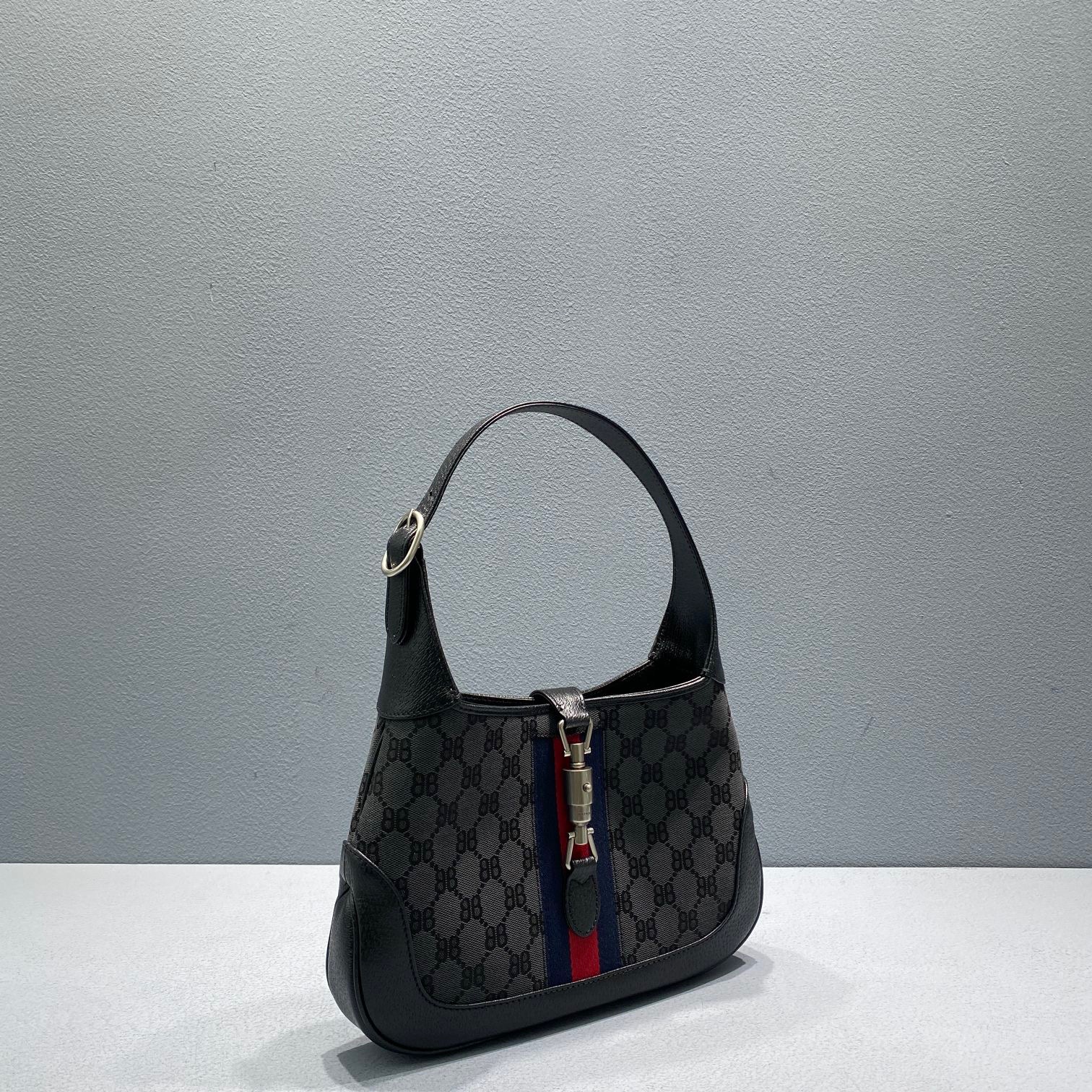 Balenciaga&Gucci Jackie bag/Joint Presbyopia Underarm Bag/Crossbody Bag The combination of classic bag shape and modern element colors .The outline of the bag is very retro, wrapped in brown leather piping, and the canvas surface with the classic double G logo vividly reveals the high-level beauty of GG. It can be used as an underarm bag. The hand-held one-shoulder is very light and convenient, and the lightweight bag will be addictive to carry on the back. Style number: 2268 Medium: 27.9×25.9×9.9cm (adjustable shoulder straps)
