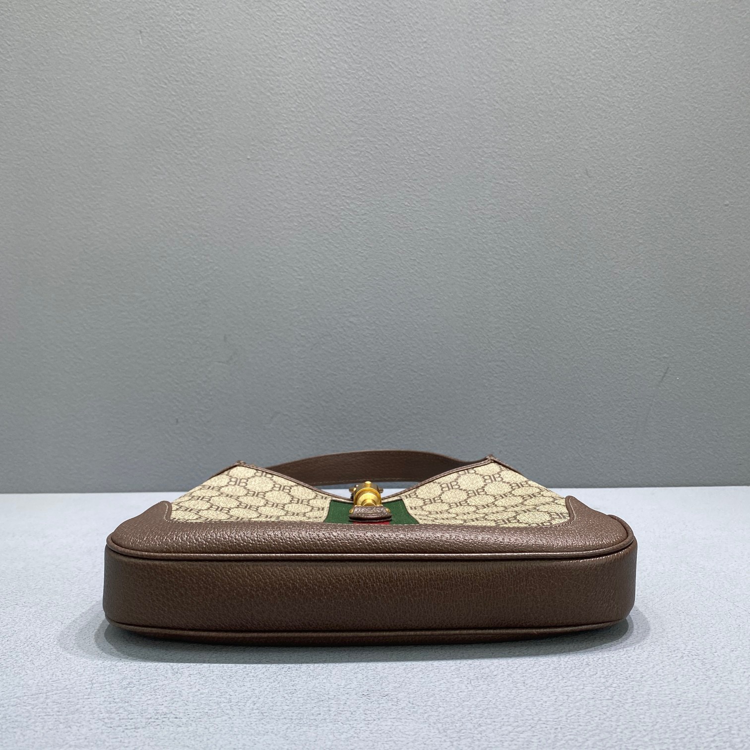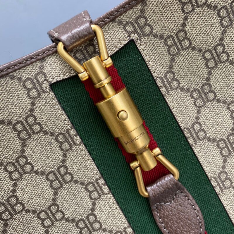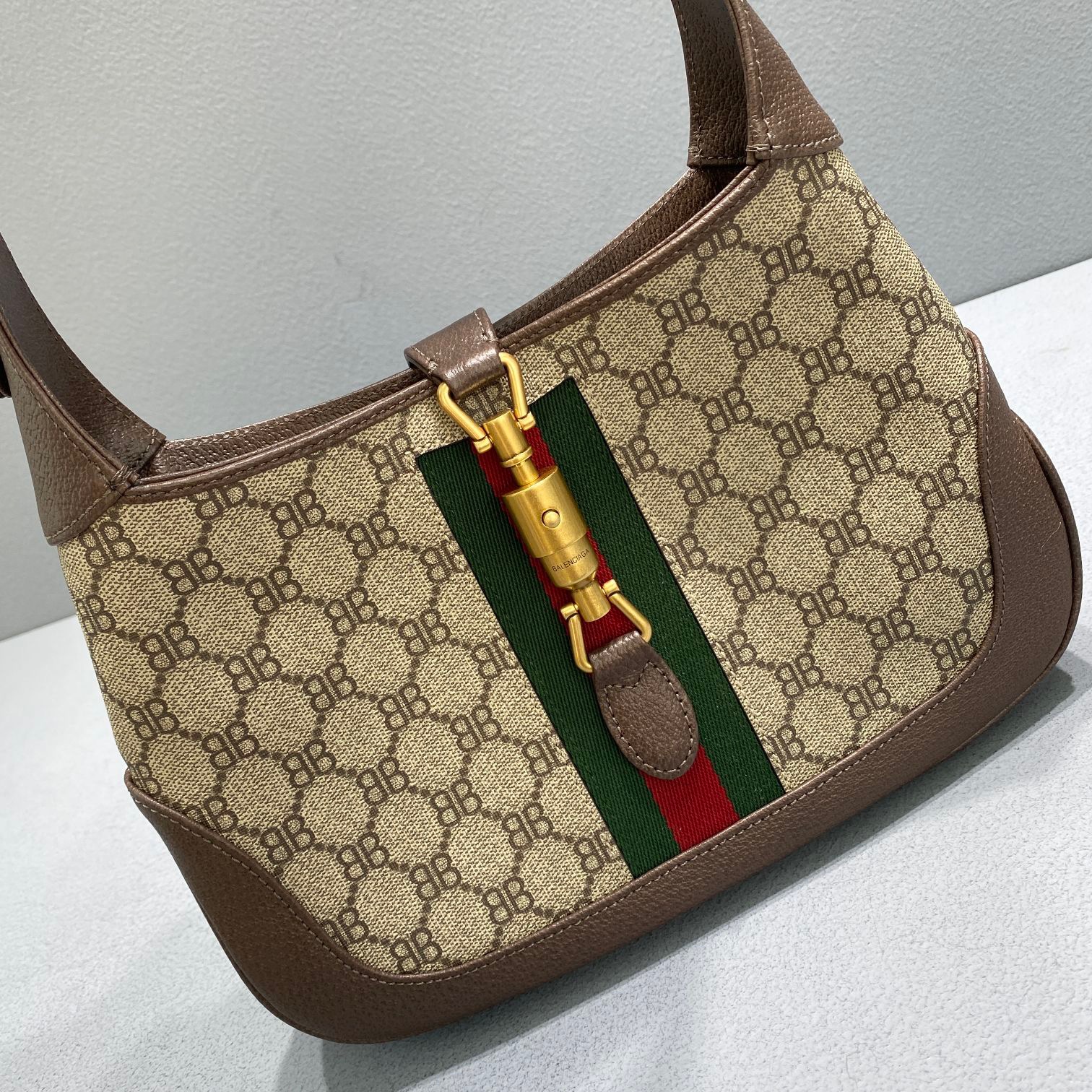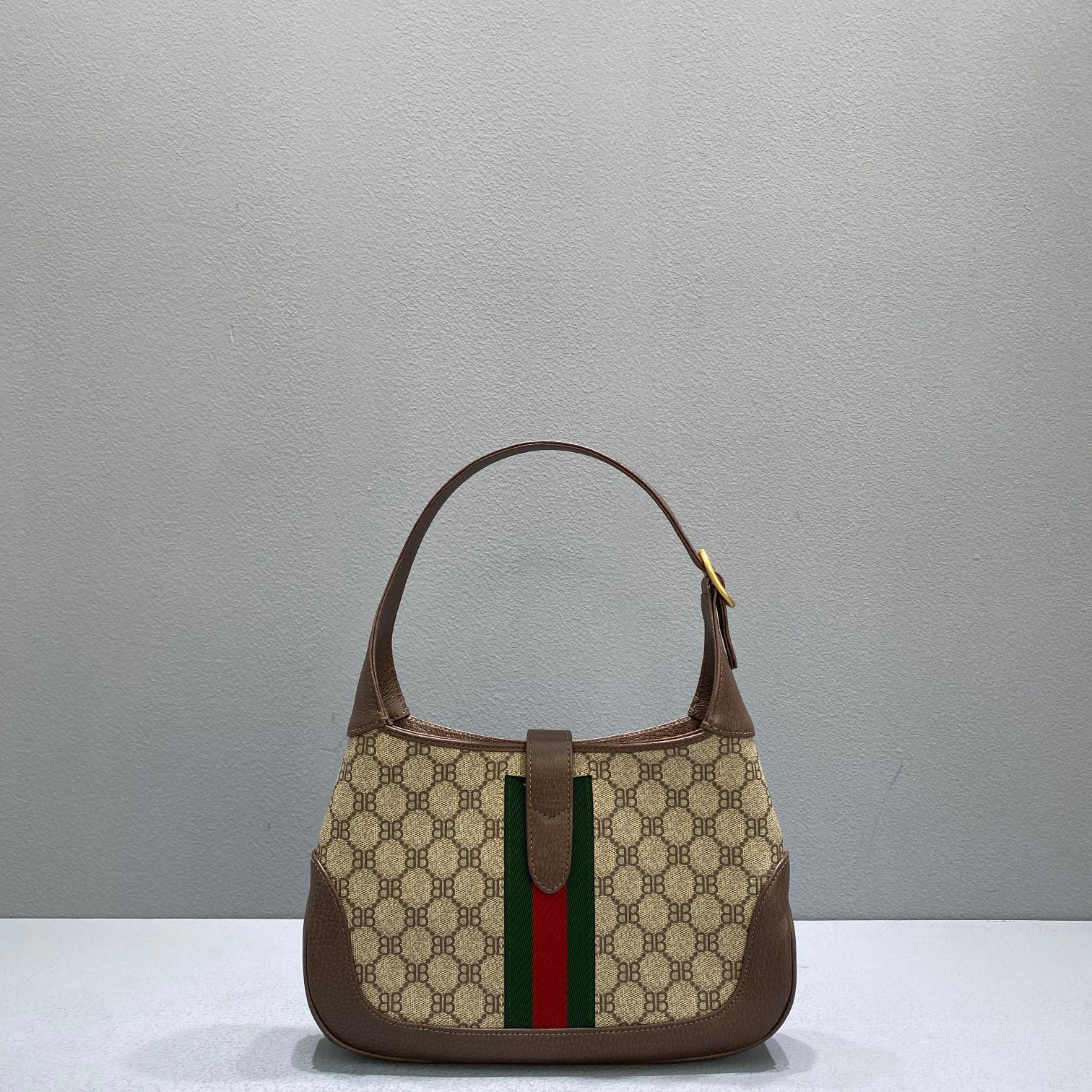 Balenciaga & Gucci Jackie bag/Joint Presbyopia Underarm Bag/Crossbody BagThe combination of classic bag shape and modern element colors .The outline of the bag is very retro, wrapped in brown leather piping, and the canvas surface with the classic double G logo vividly reveals the high-level beauty of GG. It can be used as an underarm bag. The hand-held one-shoulder is very light and convenient, and the lightweight bag will be addictive to carry on the back.Style number: 2268Medium: 27.9×25.9×9.9cm (adjustable shoulder straps)