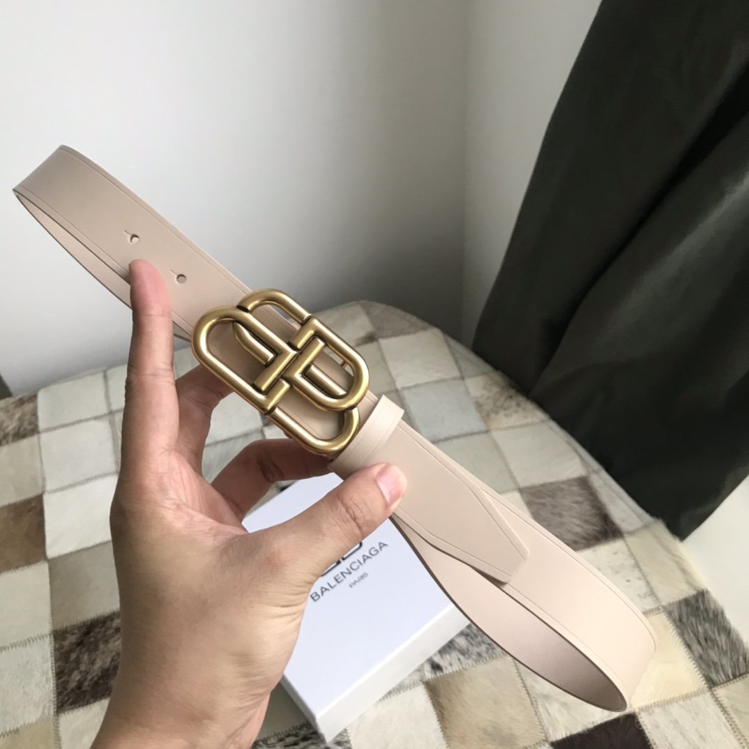 New 2024 Ladies Belt Double-sided top-grade Italian matte calfskin with vintage brass buckle Exquisite workmanship Delicate feel Width 3.0cm Apricot