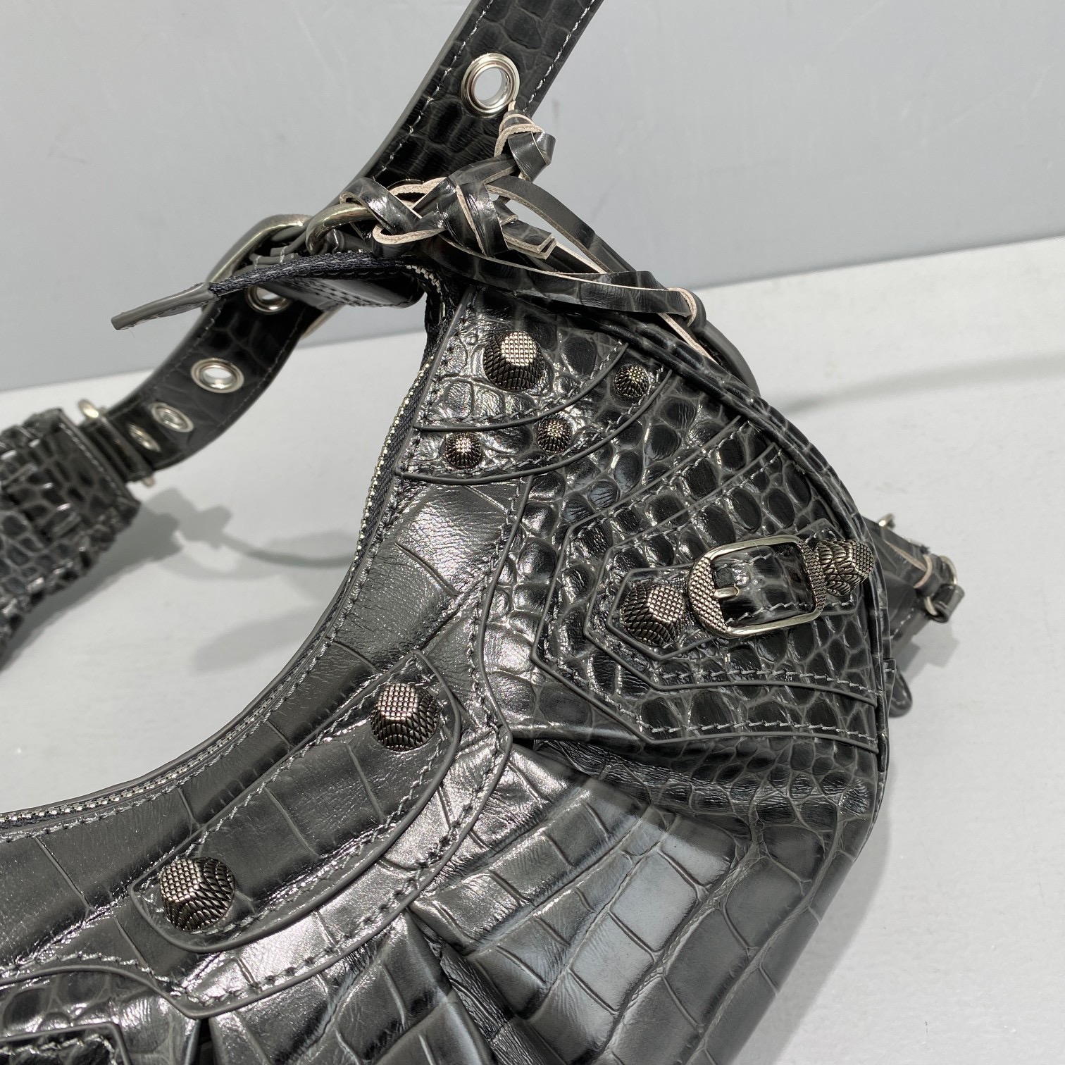 Balenciaga Le Cagole 30 Crocodile Black