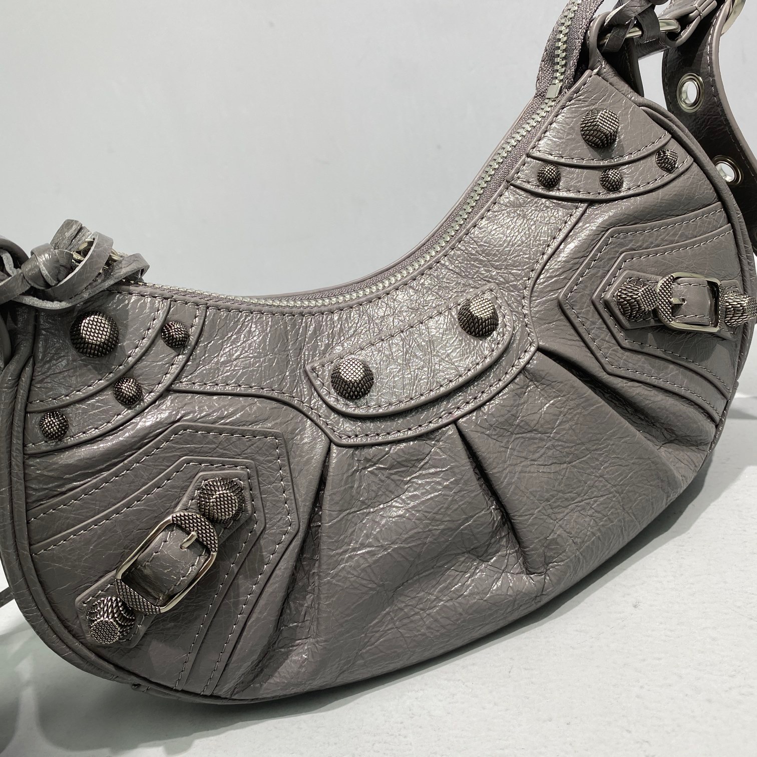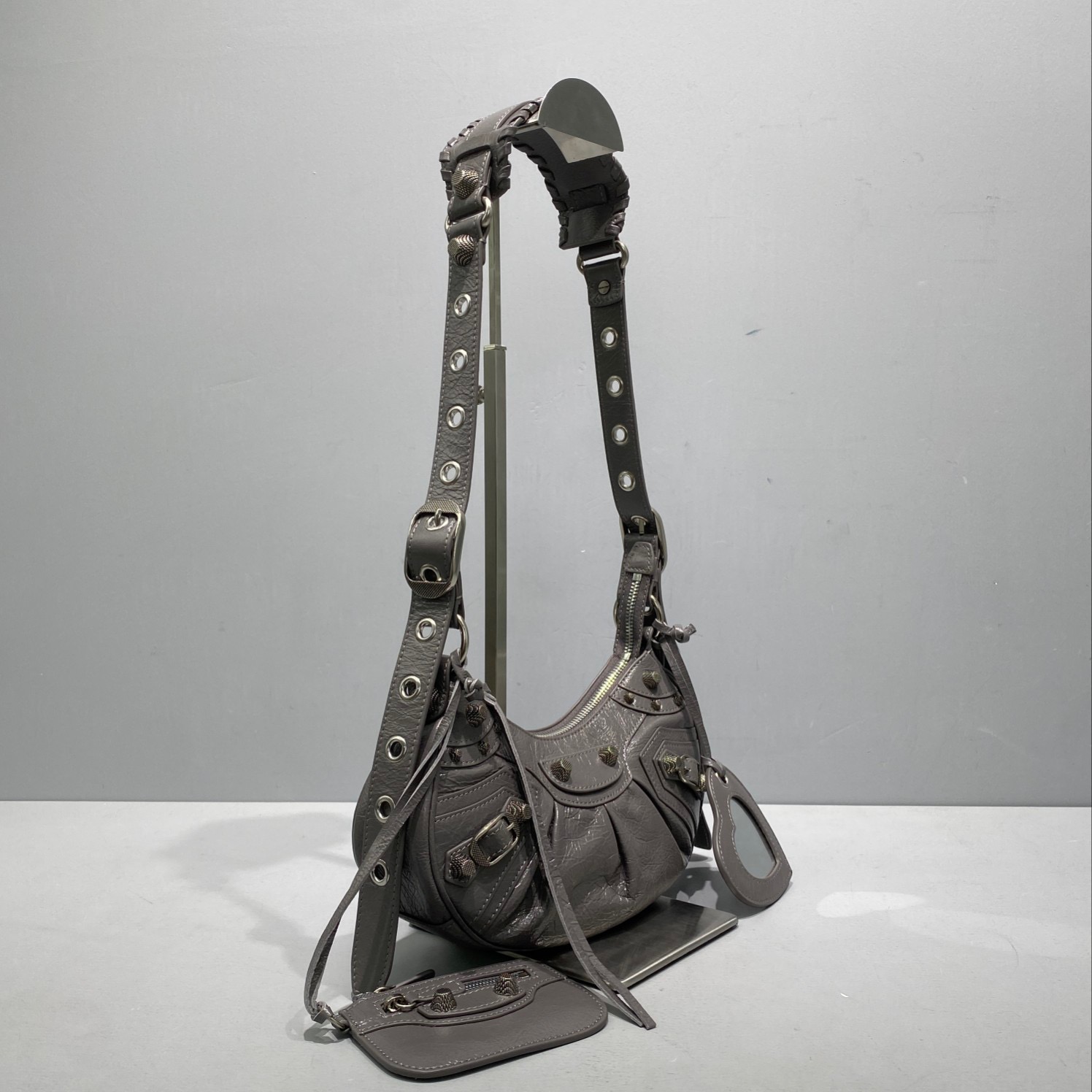 Little GrayBalenciaga Le Cagole Half Moon Armpit/Crossbody Bag The traditional motorcycle bag has been improved with adjustable woven shoulder straps, additional eyelets, external leather card holder, heart-shaped hanging mirror ♡ Following the small and exquisite design of classic motorcycle elements, various carrying methods and each texture design is really enough Now, the upper body is full of high-level sense and super casual atmosphere! Style number: 92718 Small size: length 30X height 16X width 8CMC Large size: length 33X height 16X width 8.4CMC