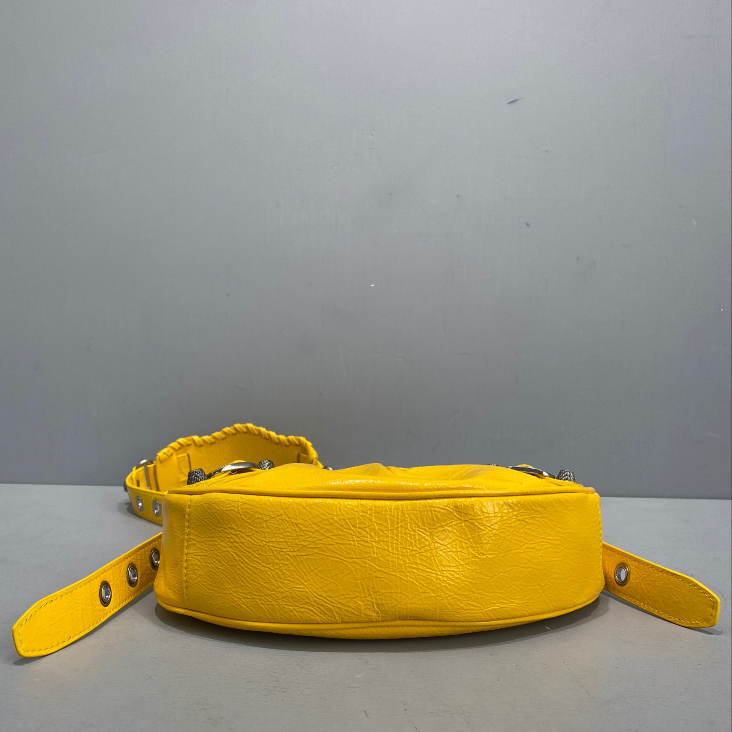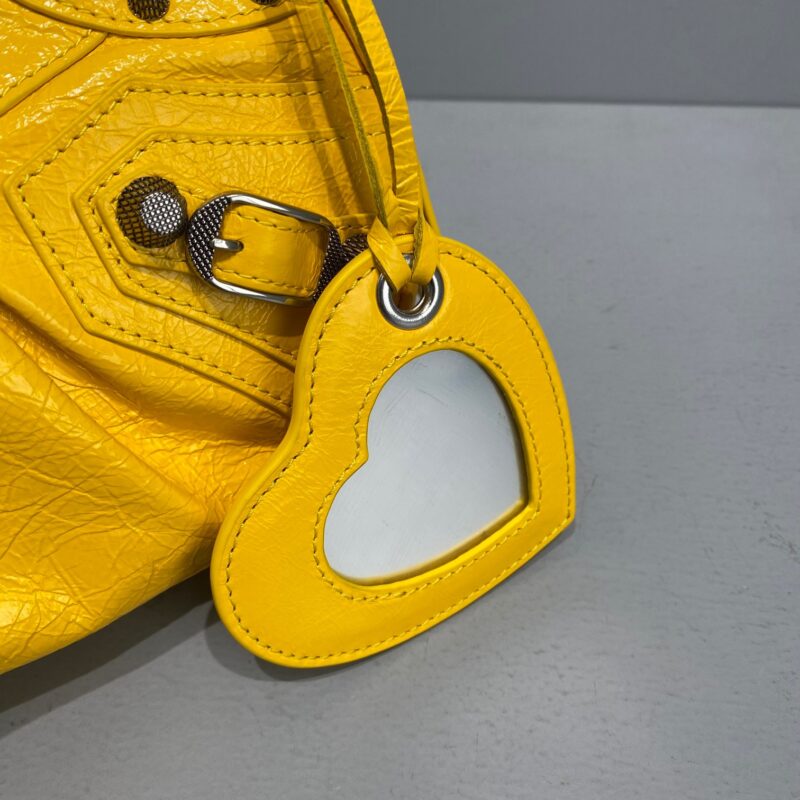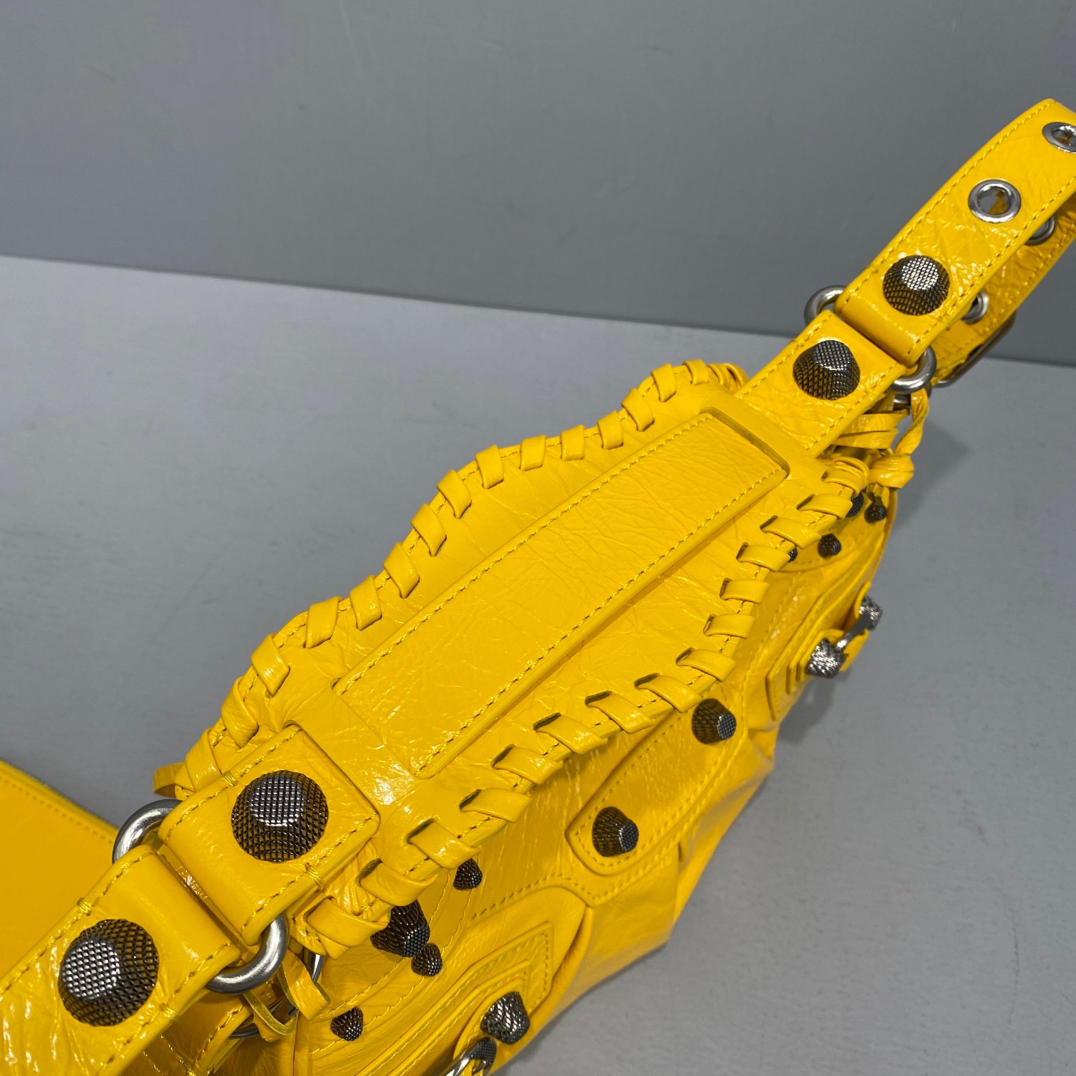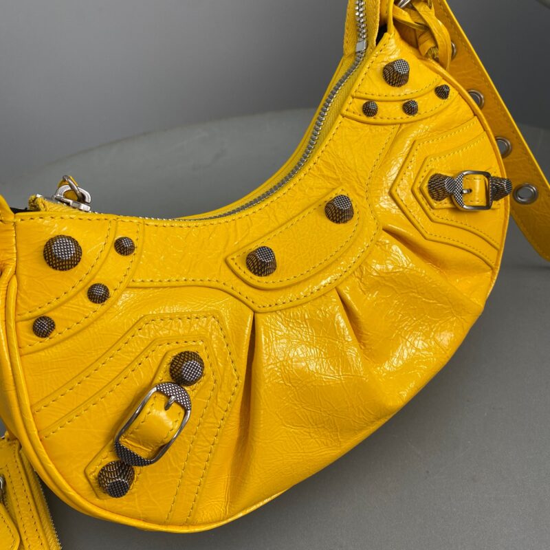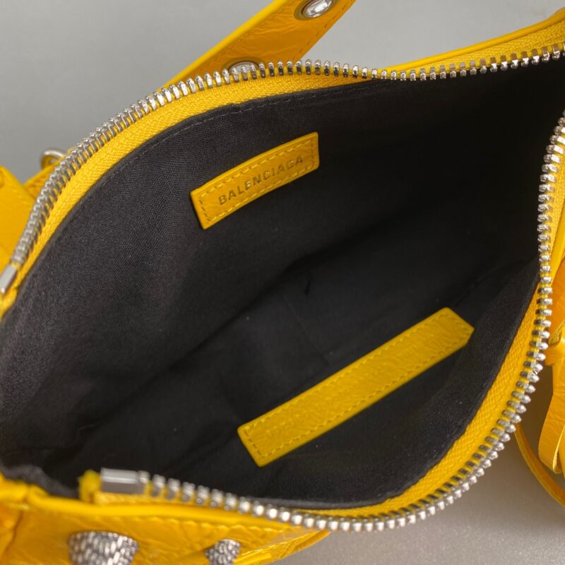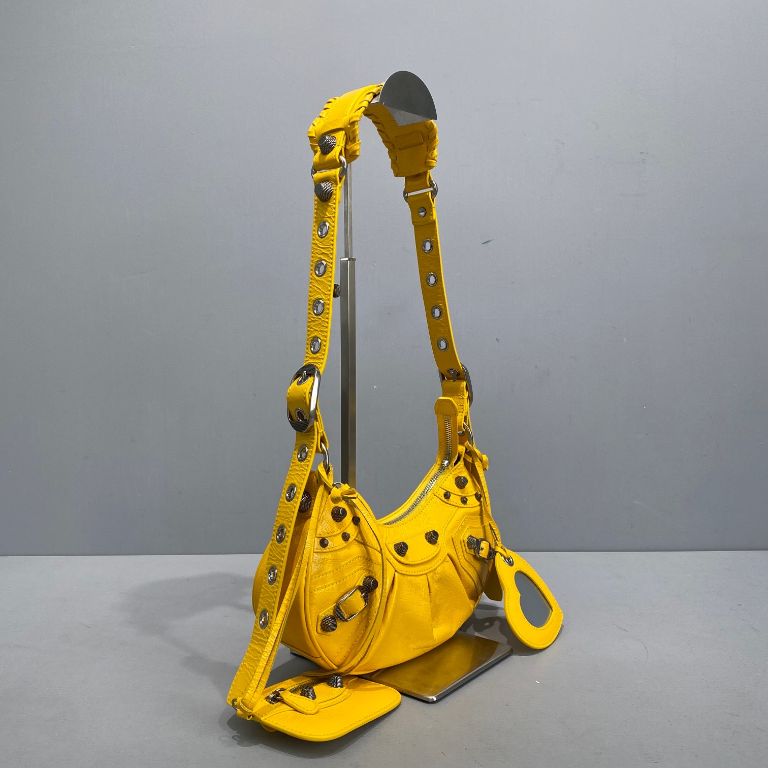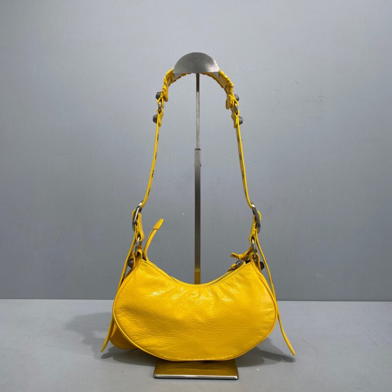 Little Yellow Balenciaga Le Cagole Half Moon Armpit/Crossbody Bag The traditional motorcycle bag has been improved with adjustable woven shoulder straps, additional eyelets, external leather card holder, heart-shaped hanging mirror. Following the small and exquisite design of classic motorcycle elements, various carrying methods and each texture design is really enough. Now, the upper body is full of high-level sense and super casual atmosphere. Style number: 92718 Small size: length 30X height 16X width 8CMC Large size: length 33X height 16X width 8.4CMC