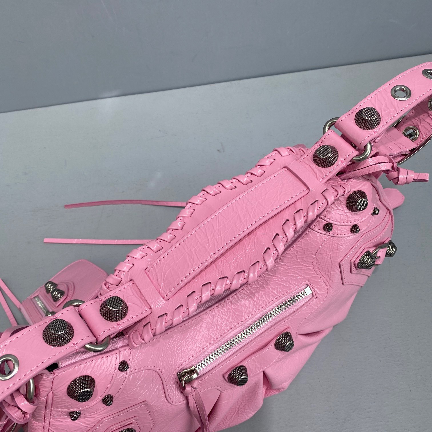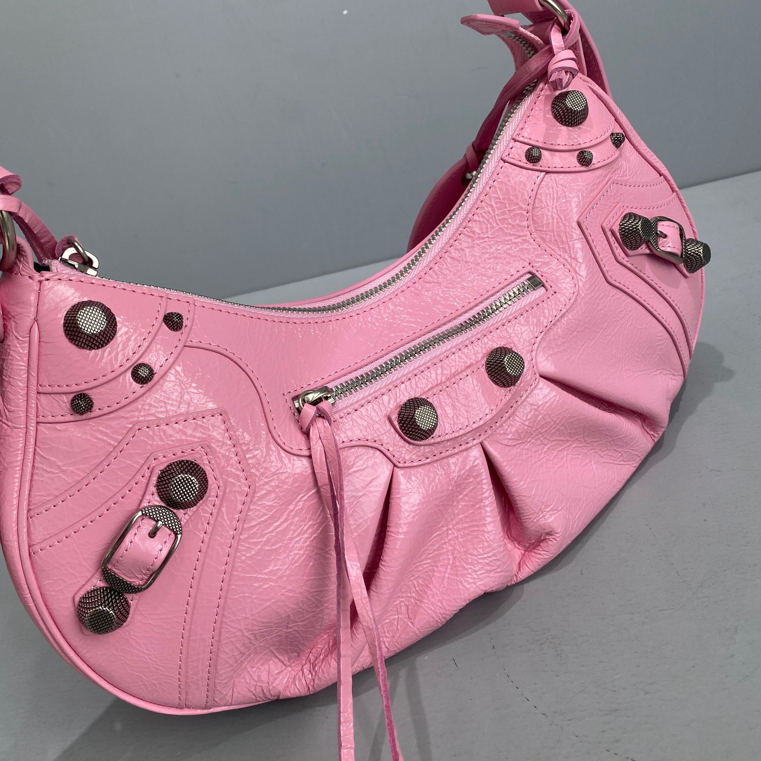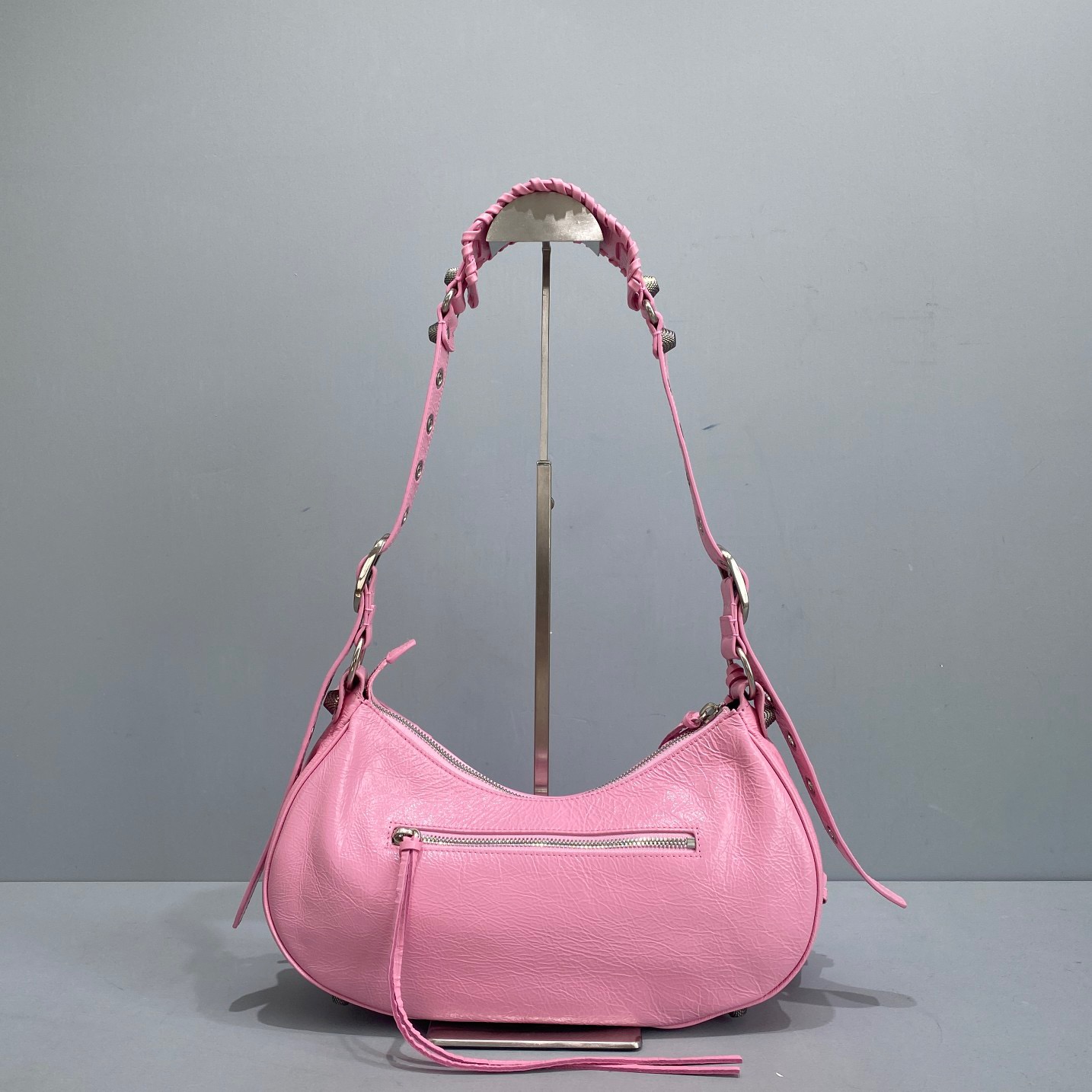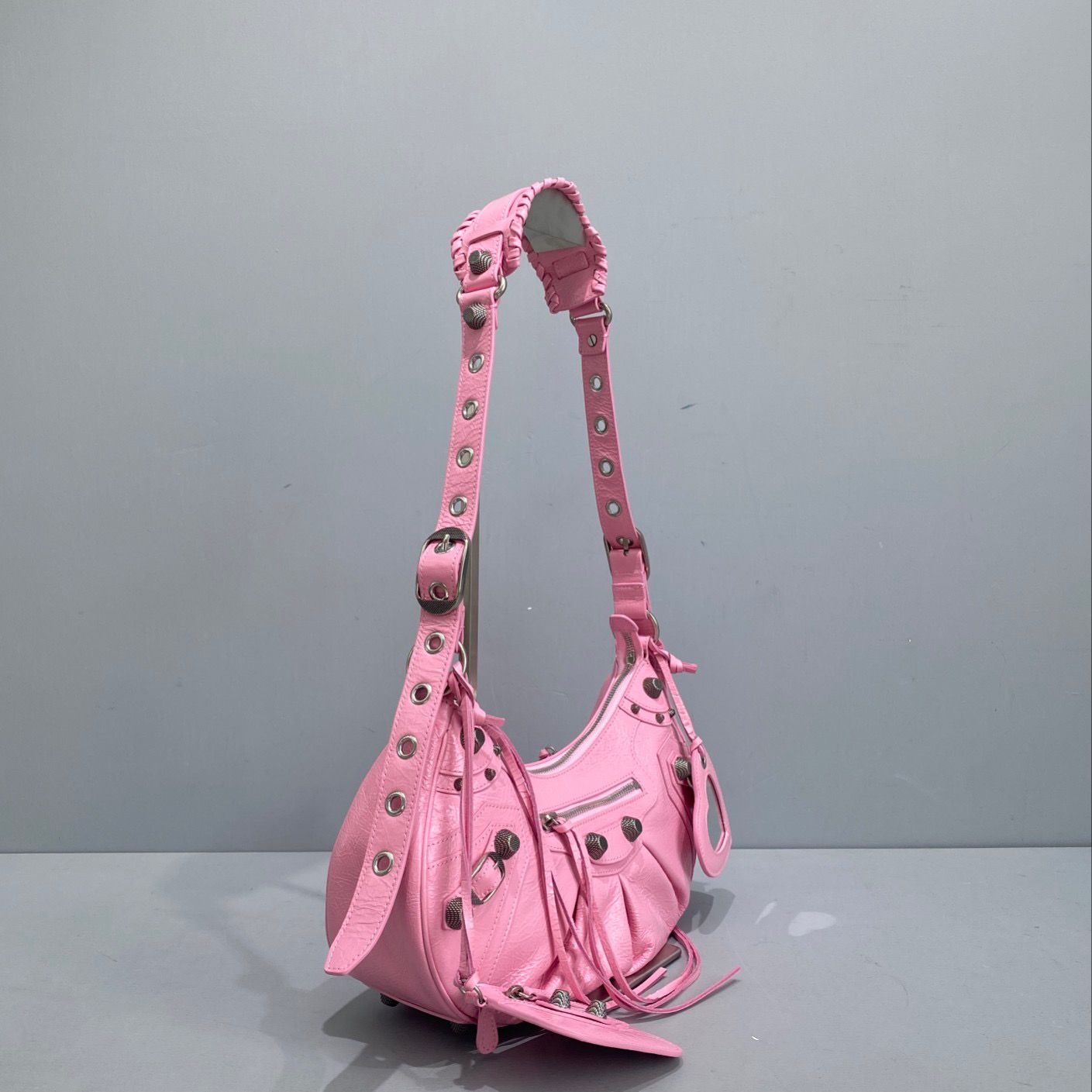 Big Pink Balenciaga Le Cagole Half Moon Armpit/Crossbody Bag The traditional motorcycle bag has been improved with adjustable woven shoulder straps, additional eyelets, external leather card holder, heart-shaped hanging mirror. Following the small and exquisite design of classic motorcycle elements, various carrying methods and each texture design is really enough. Now, the upper body is full of high-level sense and super casual atmosphere. Style number: 92718 Small size: length 30X height 16X width 8CMC Large size: length 33X height 16X width 8.4CMC