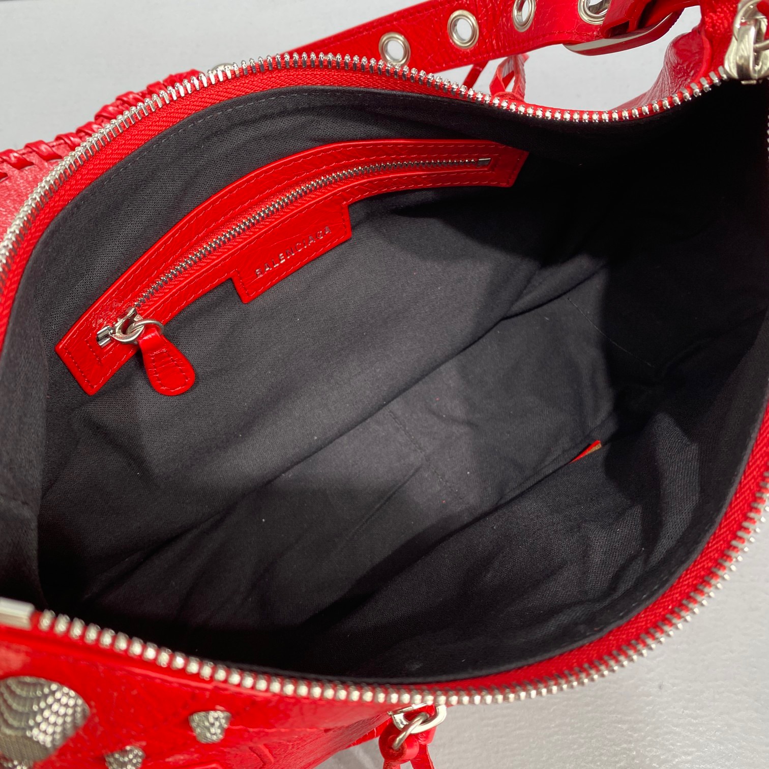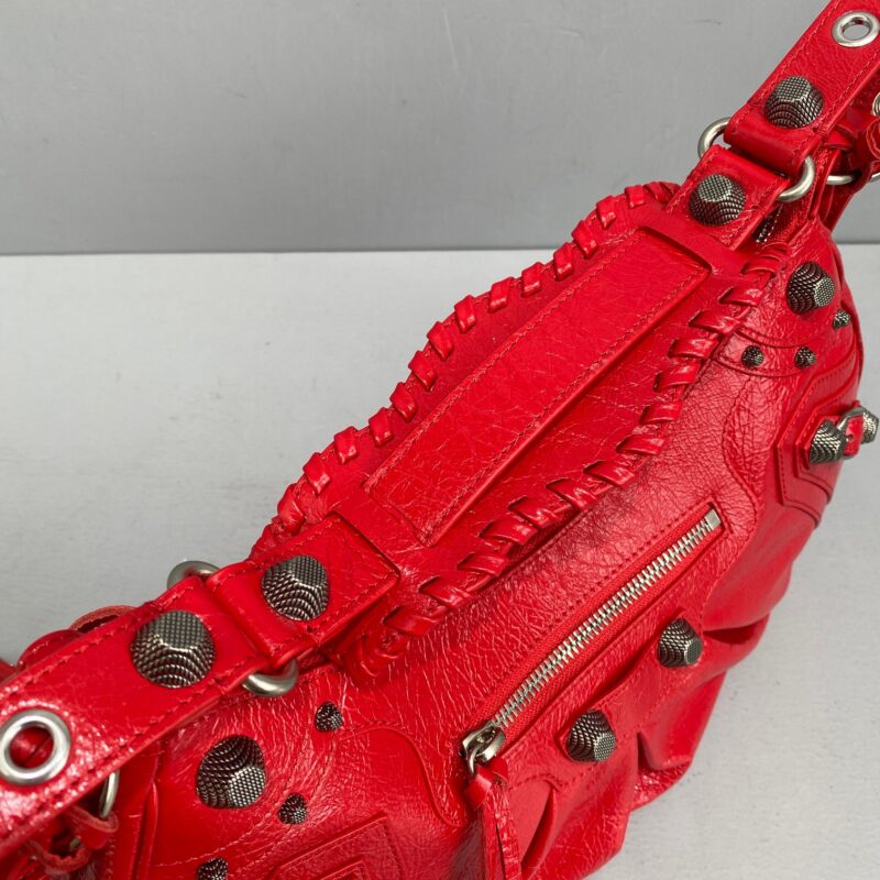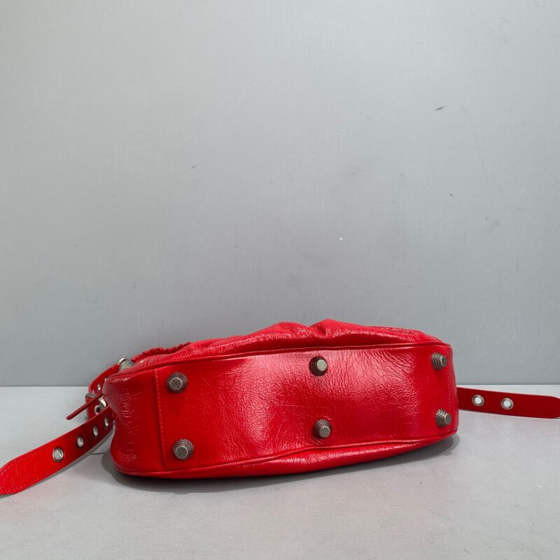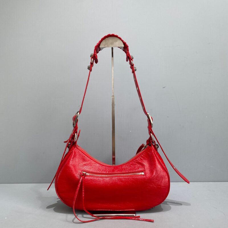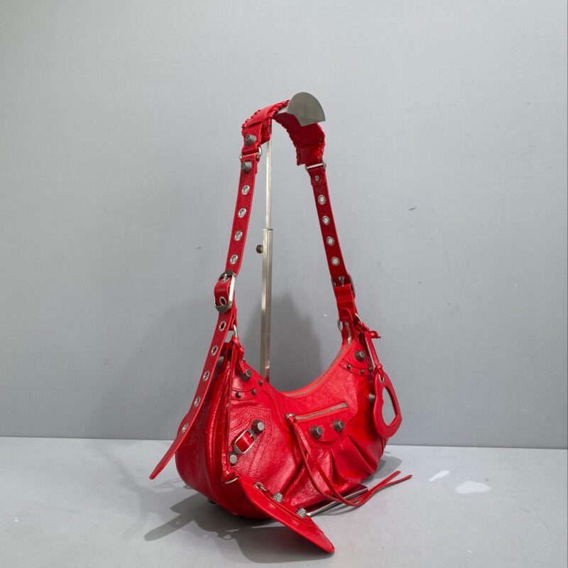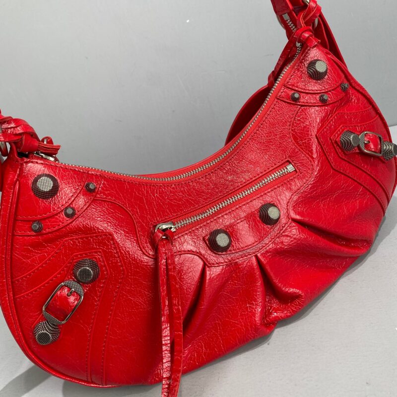 Big Red Balenciaga Le Cagole Half Moon Armpit/Crossbody Bag The traditional motorcycle bag has been improved with adjustable woven shoulder straps, additional eyelets, external leather card holder, heart-shaped hanging mirror. Following the small and exquisite design of classic motorcycle elements, various carrying methods and each texture design is really enough. Now, the upper body is full of high-level sense and super casual atmosphere. Style number: 92718 Small size: length 30X height 16X width 8CMC Large size: length 33X height 16X width 8.4CMC