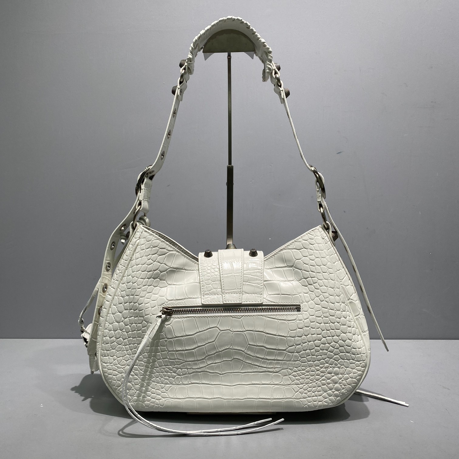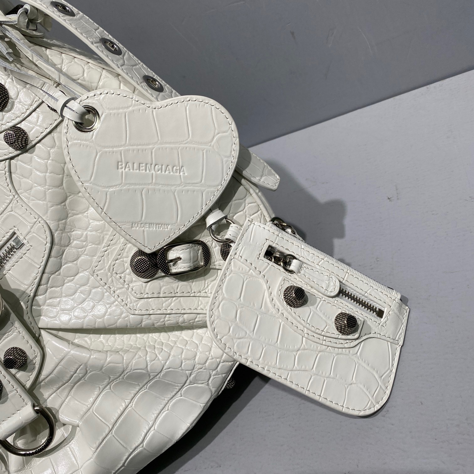 Balenciaga Le Cagole Half Moon Armpit/Crossbody BagThe traditional motorcycle bag has been improved with adjustable woven shoulder straps, additional eyelets, external leather card holder, heart-shaped hanging mirror. Following the small and exquisite design of classic motorcycle elements, various carrying methods and each texture design is really enough Now, the upper body is full of high-level sense and super casual atmosphere.Style number: 92718Small size: length 30X height 16X width 8CMCLarge size: length 33X height 16X width 8.4CMC