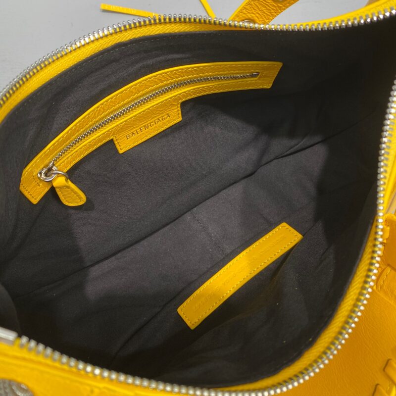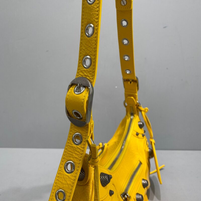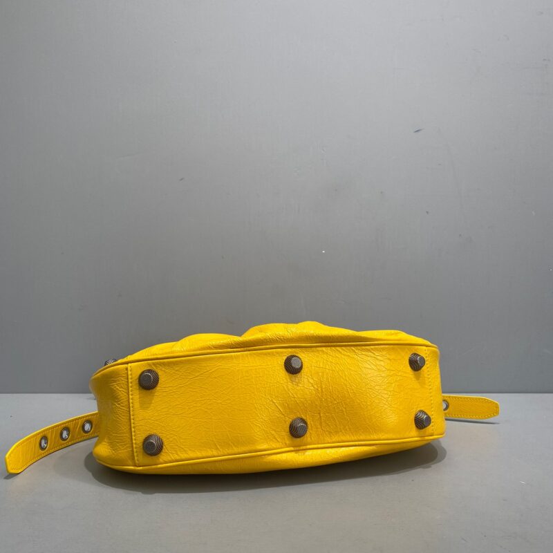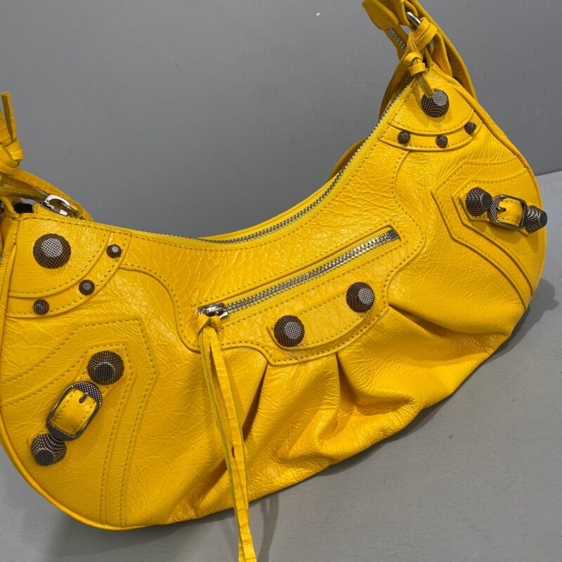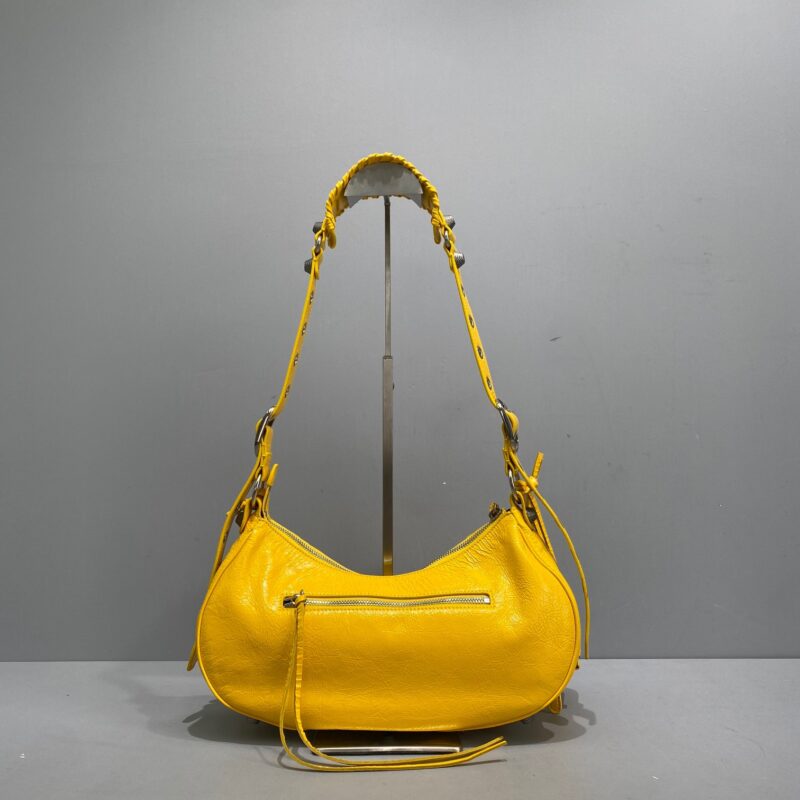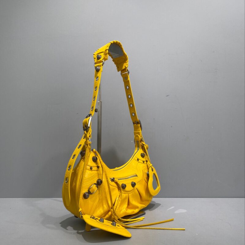 Big Yellow Balenciaga Le Cagole Half Moon Armpit/Crossbody Bag The traditional motorcycle bag has been improved with adjustable woven shoulder straps, additional eyelets, external leather card holder, heart-shaped hanging mirror. Following the small and exquisite design of classic motorcycle elements, various carrying methods and each texture design is really enough. Now, the upper body is full of high-level sense and super casual atmosphere. Style number: 92718 Small size: length 30X height 16X width 8CMC Large size: length 33X height 16X width 8.4CMC