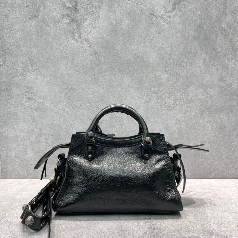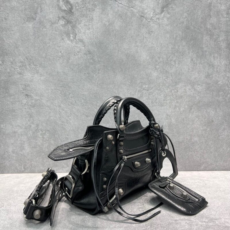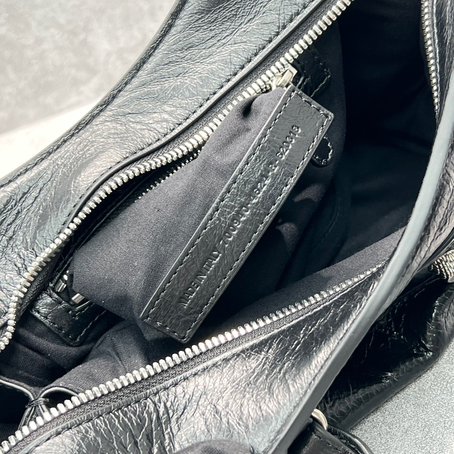 Oil Wax Black Balenciaga Neo Cagole motorcycle bag.The trapezoidal design of the handbag. The motorcycle bag that has become popular in the millennium is super casual and atmospheric. Whether you like neutral style, casual style or big man, you can easily control it. It can be used as a portable messenger and can be used for concave shape anytime, anywhere.Style number: 92535Size: 26x13x18cm