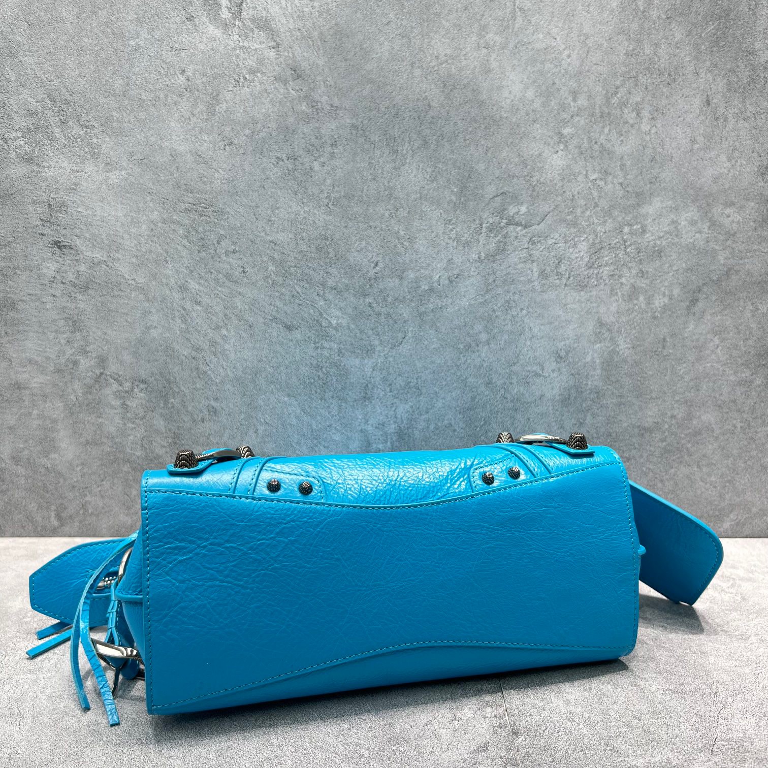 Oil Wax Blue Balenciaga Neo Cagole motorcycle bag.The trapezoidal design of the handbag. The motorcycle bag that has become popular in the millennium is super casual and atmospheric. Whether you like neutral style, casual style or big man, you can easily control it. It can be used as a portable messenger and can be used for concave shape anytime, anywhere.Style number: 92535Size: 26x13x18cm
