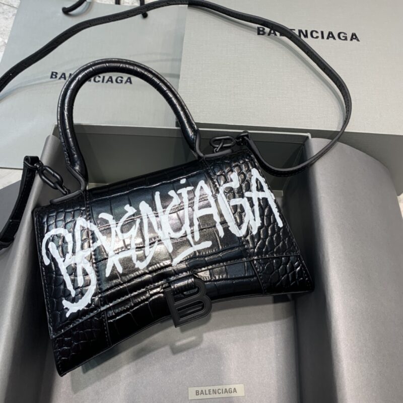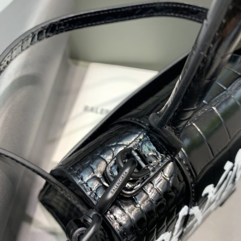 Balenciaga Small Graffiti Hourglass Bag in Black Crocodile Pattern |