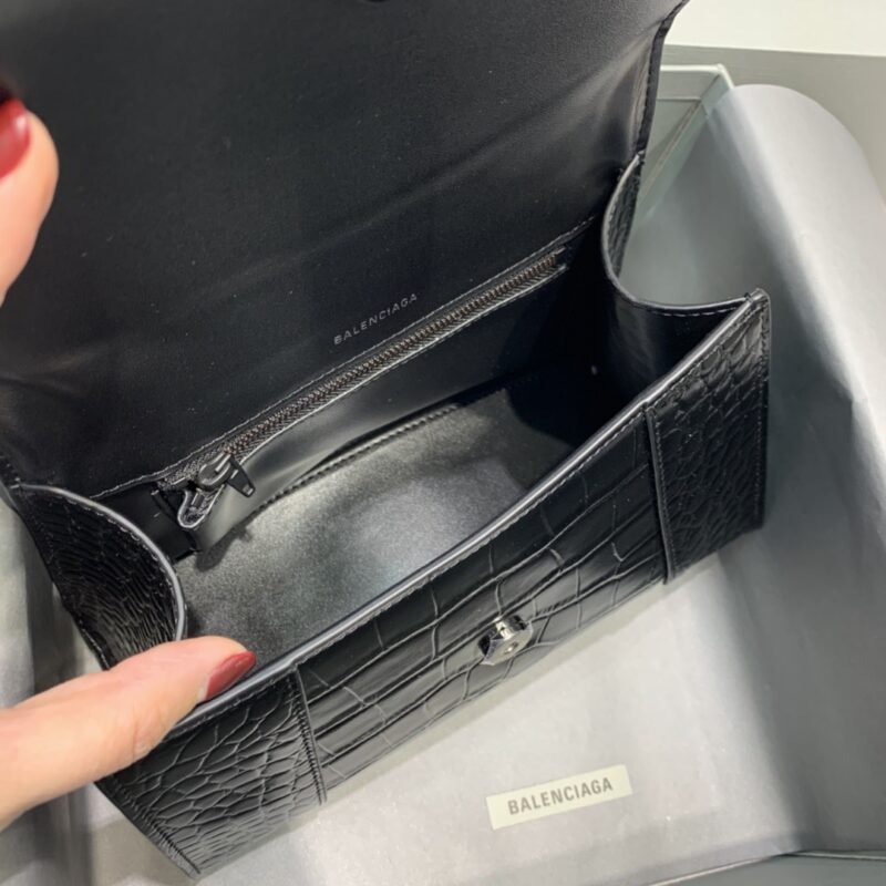 [Small size] Original Balenciaga Crocodile Pattern Black Graffiti Hourglass Bag The unique iconic arc shape is very recognizable, it is so cool at first sight. The appearance is in the shape of a half-moon. A metal B-shaped pull ring. The texture of cowhide is also very touching and stylish. Size: 23-10-14cm