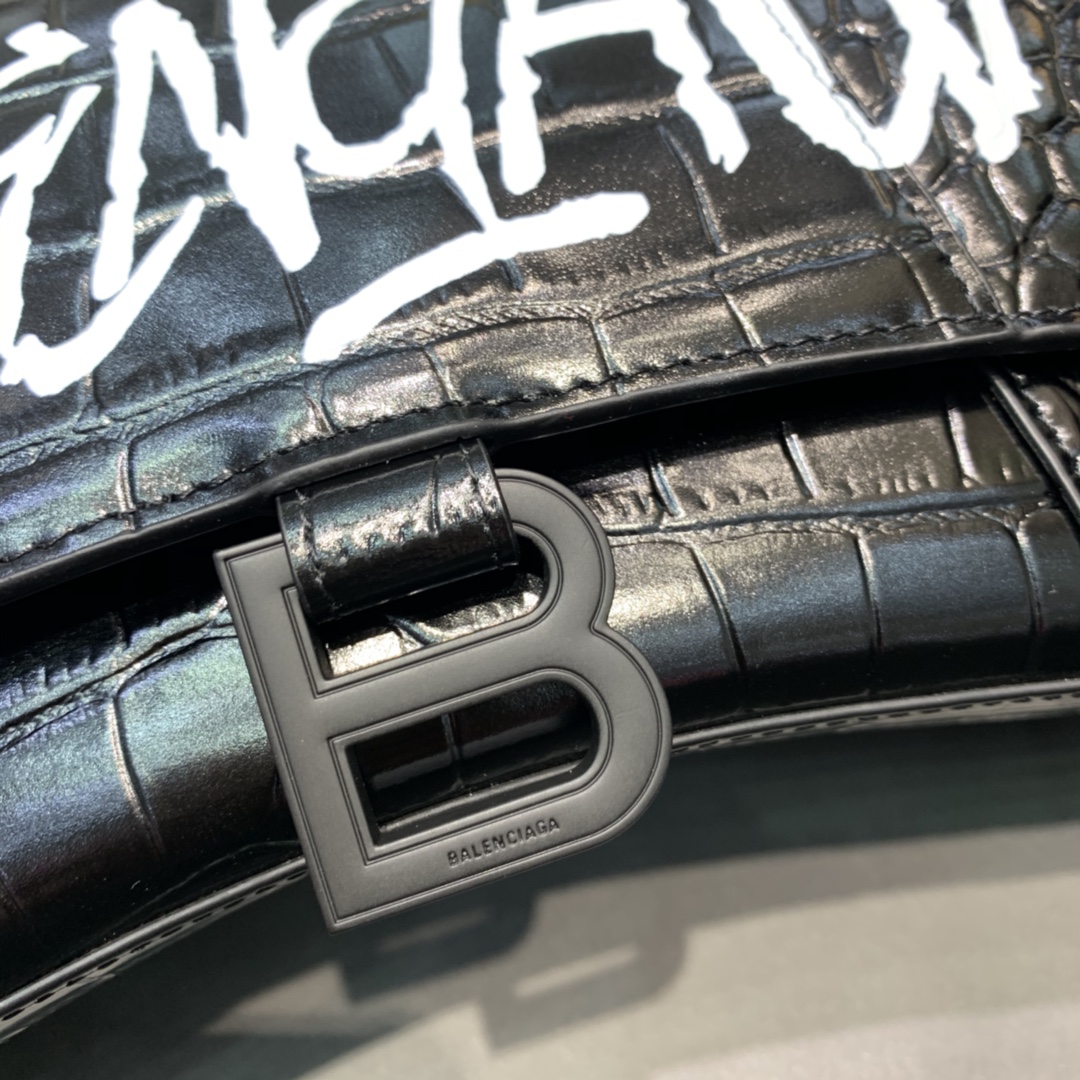 Balenciaga Small Graffiti Hourglass Bag in Black Crocodile Pattern |