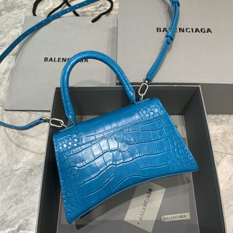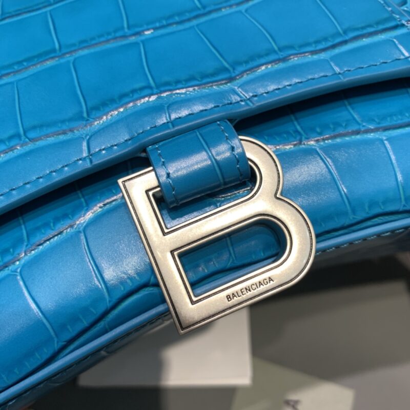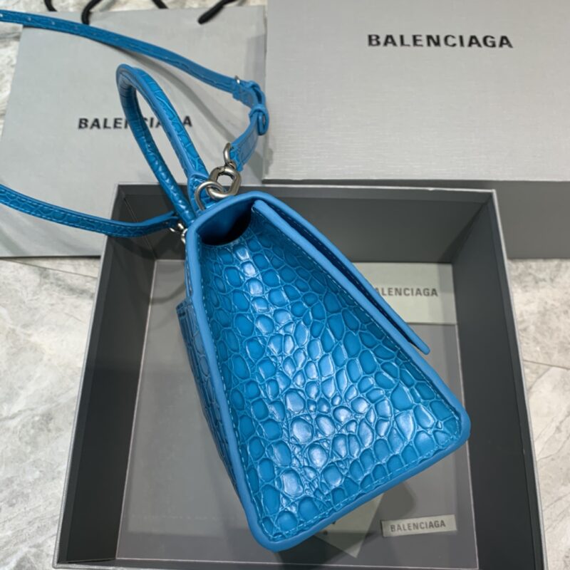 Balenciaga Small Hourglass Bag in Glazed Blue Crocodile Pattern