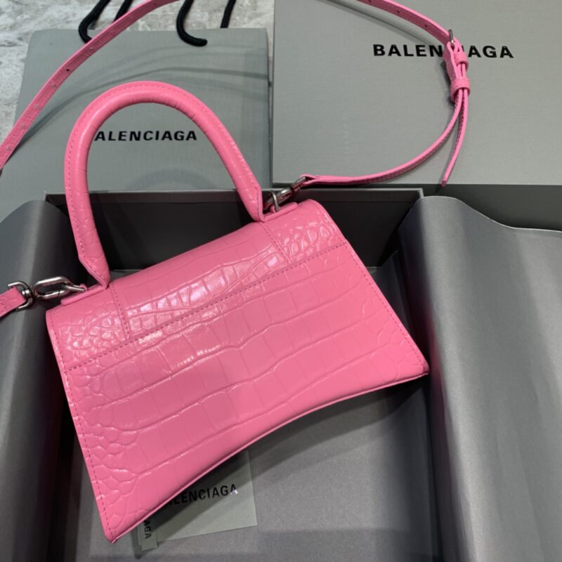 [Small size] Original Balenciaga Pink Crocodile Pattern Hourglass Bag The unique iconic arc shape is very recognizable, and it is so cool at first glance. The appearance is in the shape of a half moon. A metal B-shaped pull ring. The cowhide texture is also very touching and has a strong accent. Daily necessities are still carefully selected, versatile and trendy. This year, this Balenciaga hourglass bag will definitely be a mess, elegant. Size: 23-10-14cm