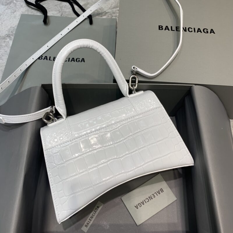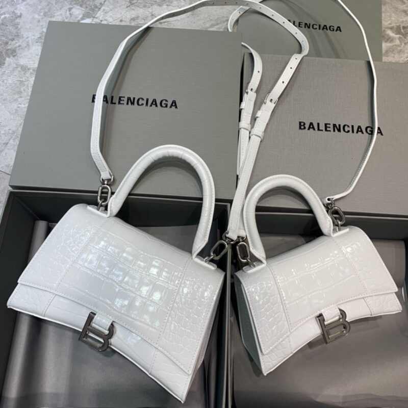 [Small size] Original Balenciaga Golden Crocodile Pattern Hourglass Bag The unique iconic arc shape is very recognizable, and it is so cool at first glance. The appearance is in the shape of a half moon. A metal B-shaped pull ring. The cowhide texture is also very touching and has a strong accent. Daily necessities are still carefully selected, versatile and trendy. This year, this Balenciaga hourglass bag will definitely be a mess, elegant. Size: 23-10-14cm