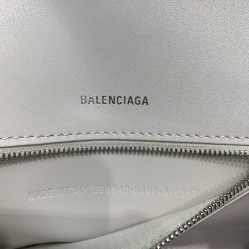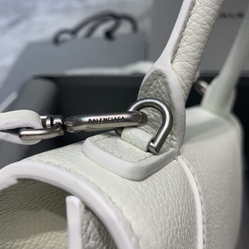 [Small size] Original Balenciaga Lychee Pattern White Hourglass Bag The unique iconic arc shape is very recognizable, it is so cool at first sight. The appearance is in the shape of a half-moon. A metal B-shaped pull ring. The texture of cowhide is also very touching and stylish. Size: 23-10-14cm