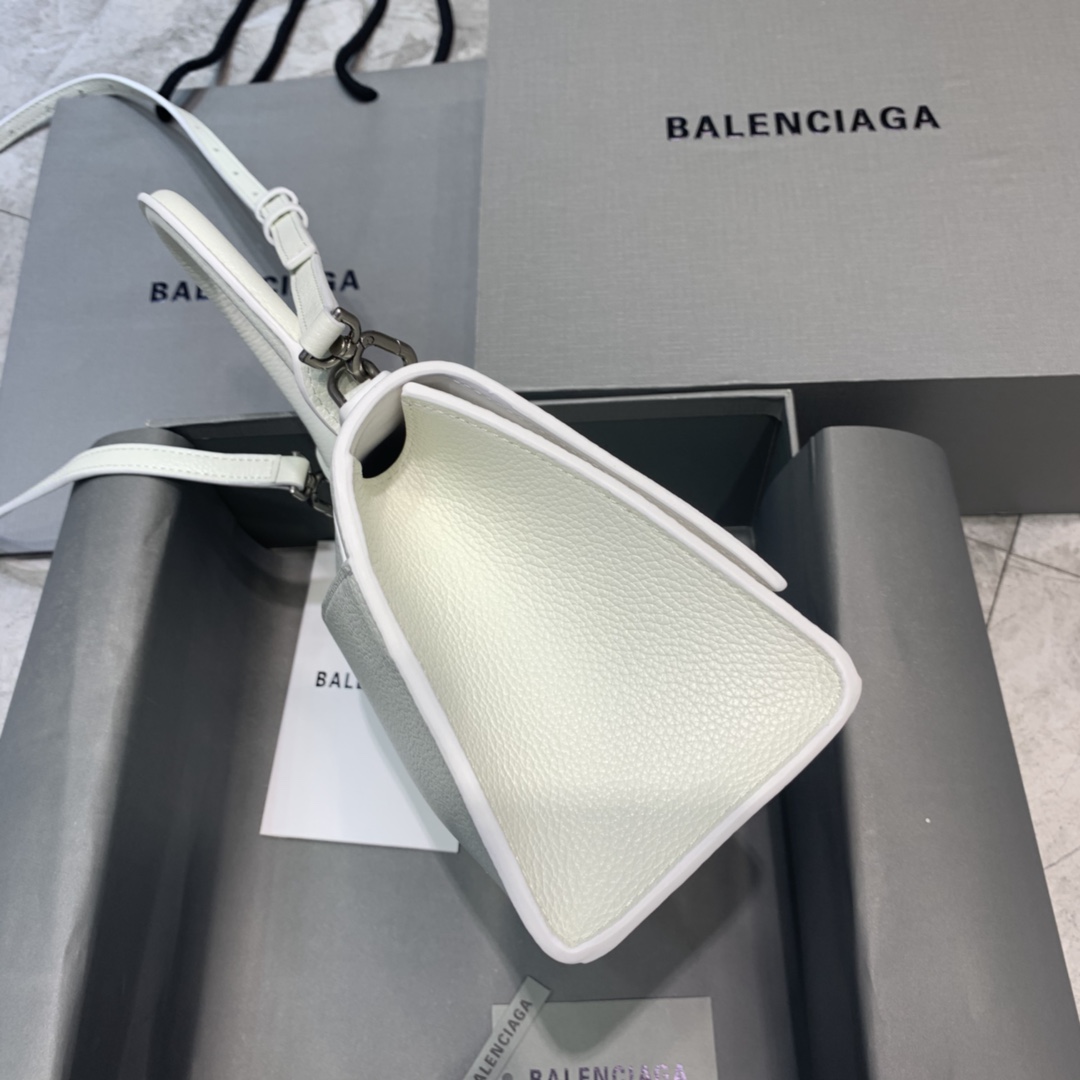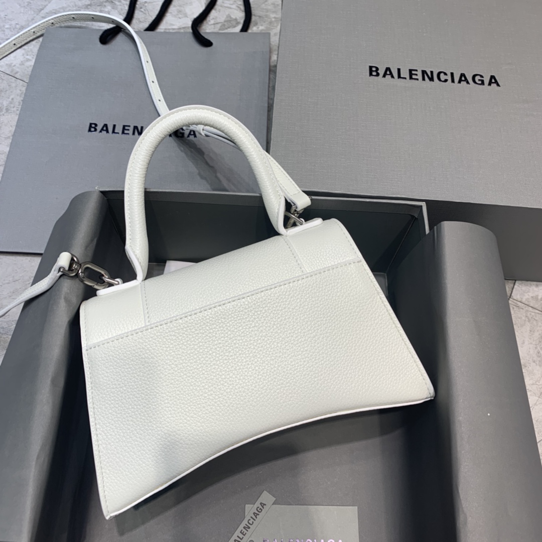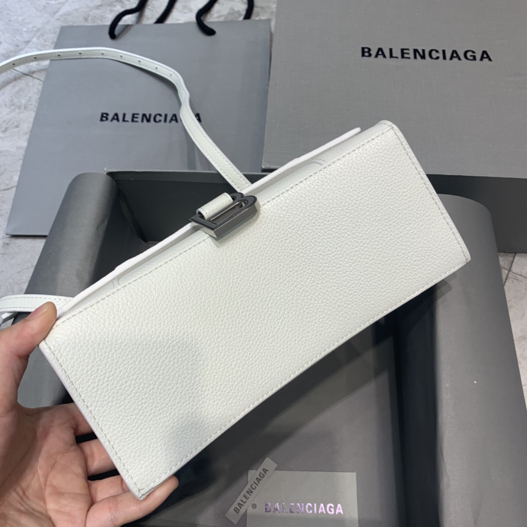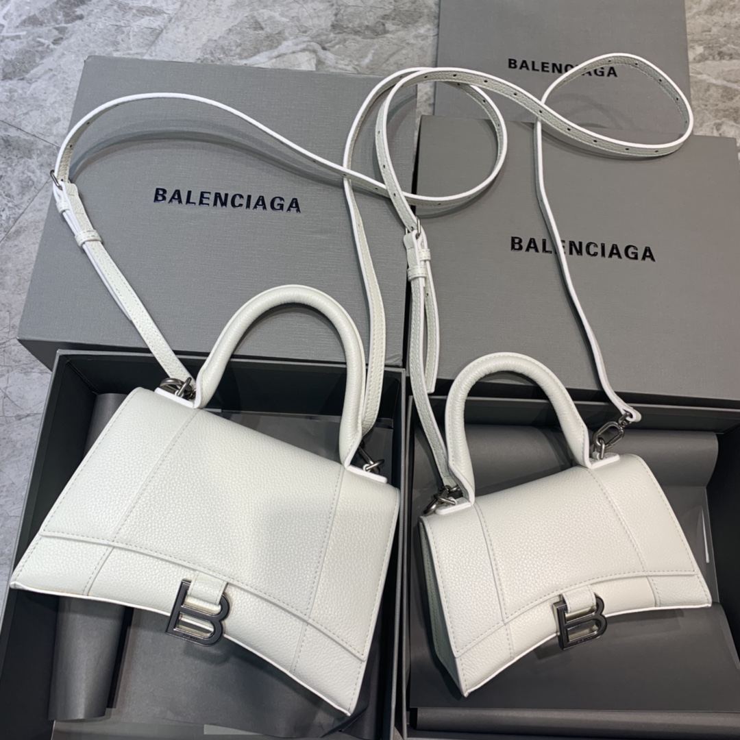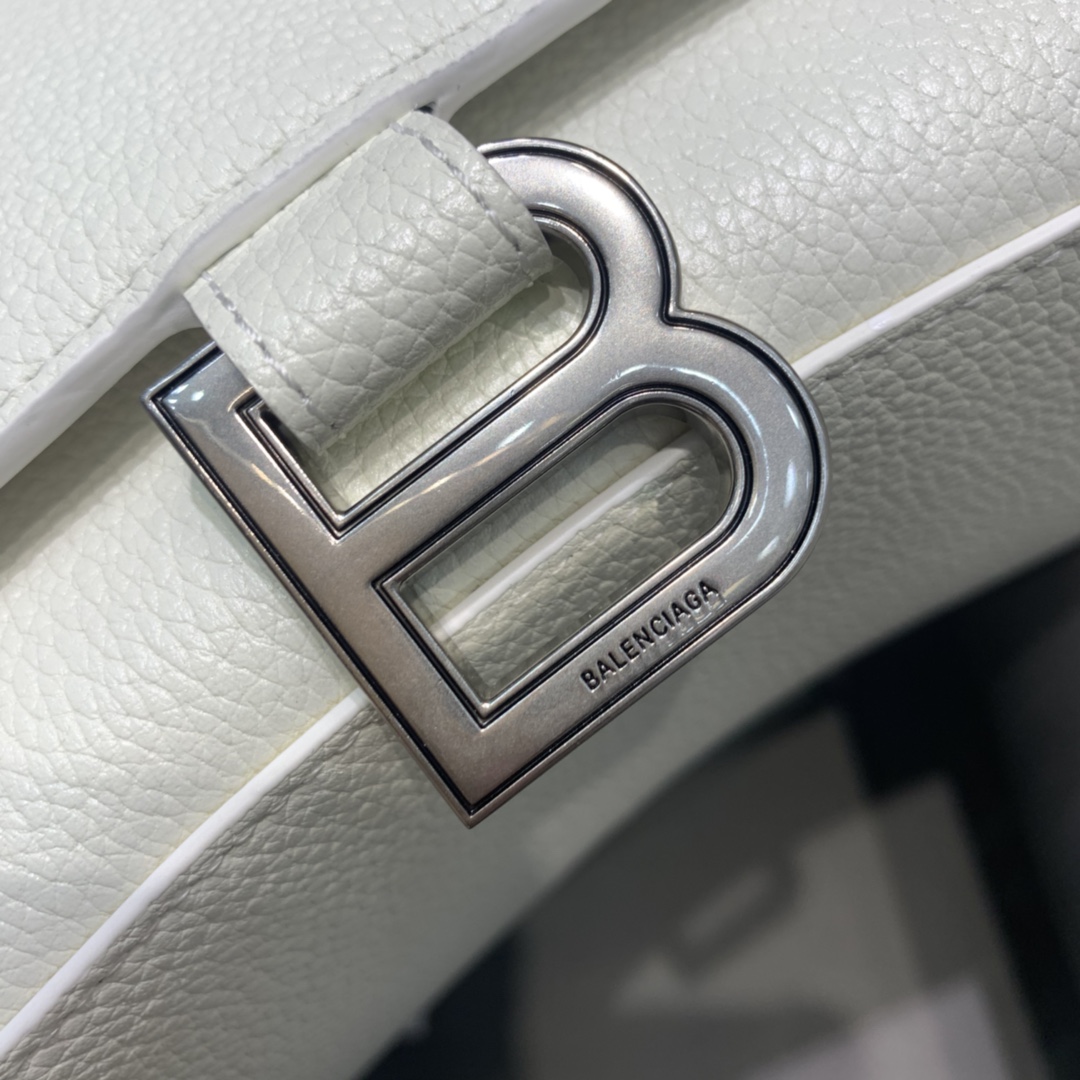 [Small size] Original Balenciaga Lychee Pattern White Hourglass Bag The unique iconic arc shape is very recognizable, it is so cool at first sight. The appearance is in the shape of a half-moon. A metal B-shaped pull ring. The texture of cowhide is also very touching and stylish. Size: 23-10-14cm