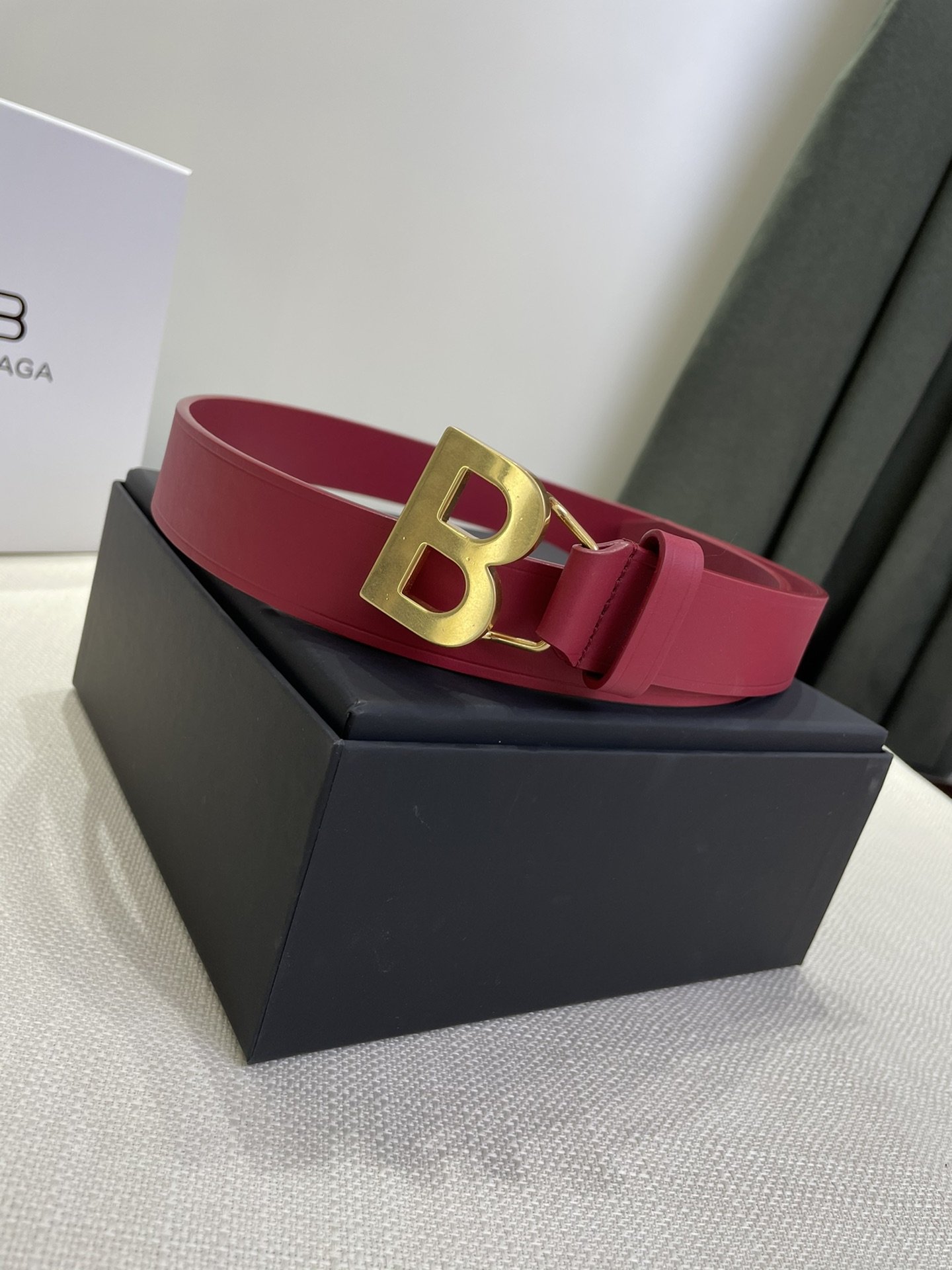 New 2024 Women’s Belt Double-sided Top Italian Matte Calfskin with Vintage Gold B-shaped Copper Buckle Exquisite Turning Delicate Feel Width 3.0cm 2021013
