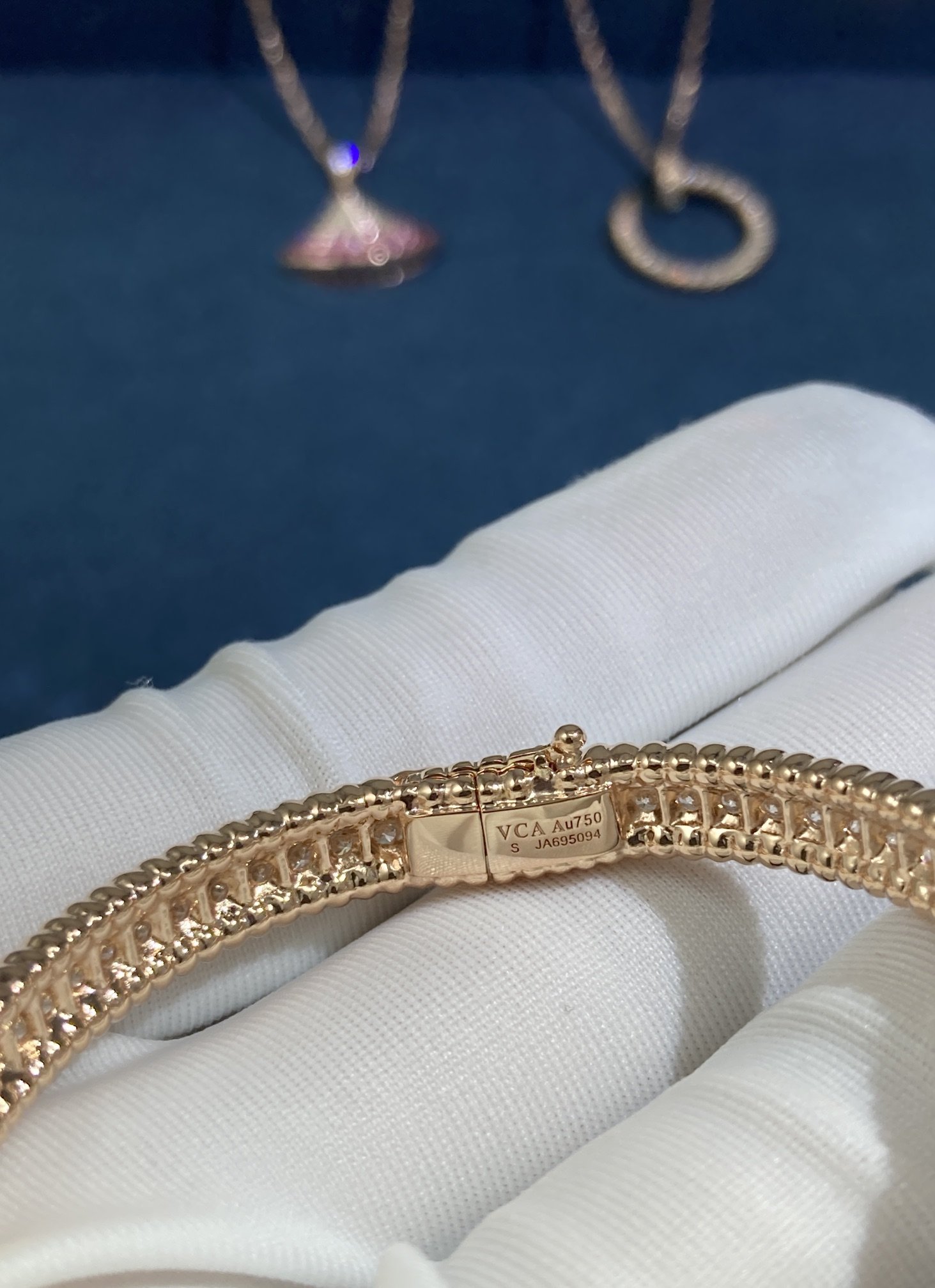 The metal used in pieces of jewelry are often a lustrous yellow or white gold, which is expertly polished to a mirror-like finish. The precious stones are carefully selected by our masters and set in a precise manner, showing off their color, clarity, and brilliance to their full potential.