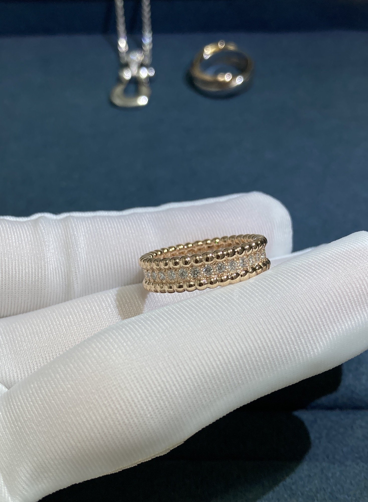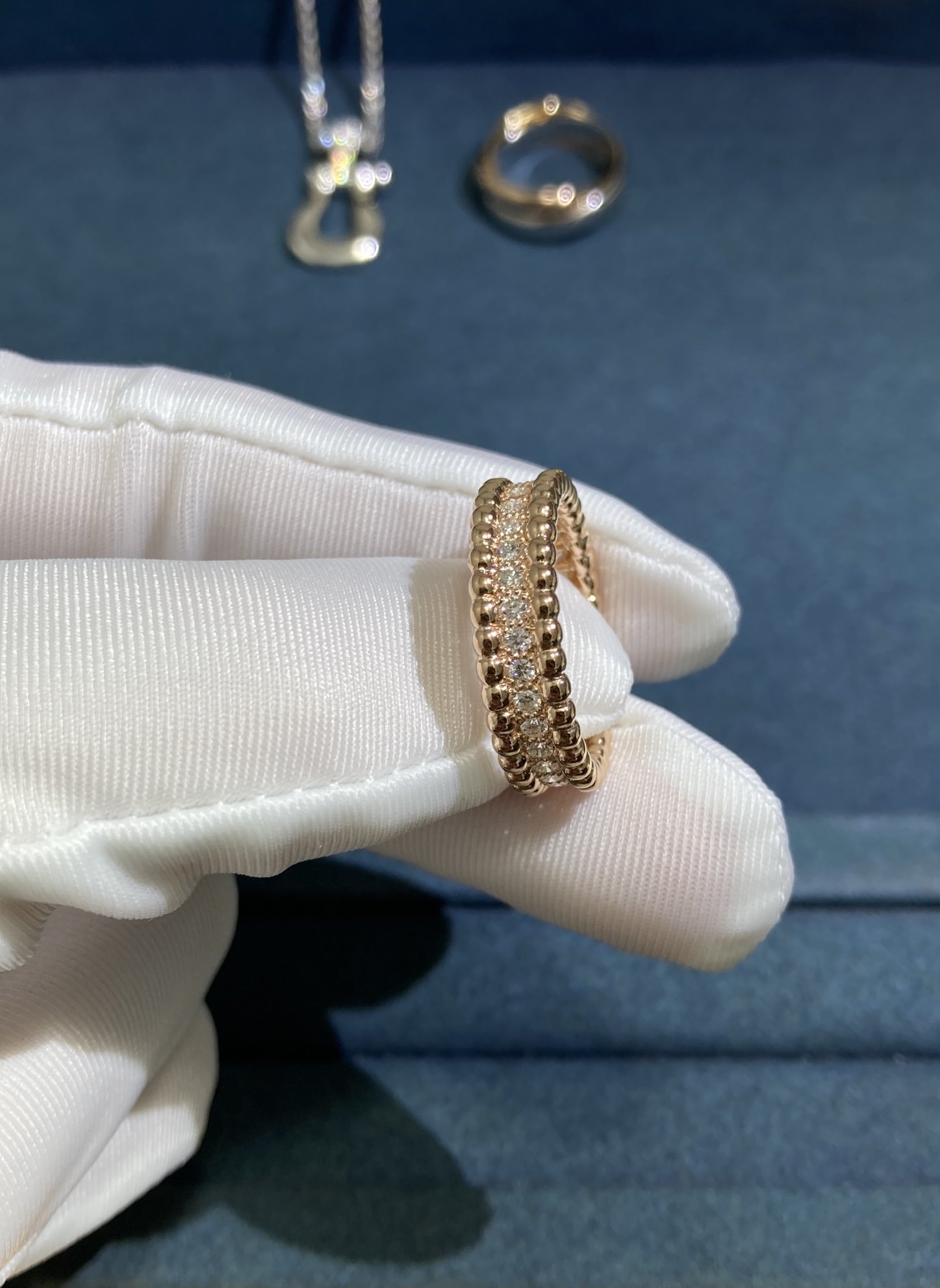 Beads Center Full Diamond Ring, Rose Gold