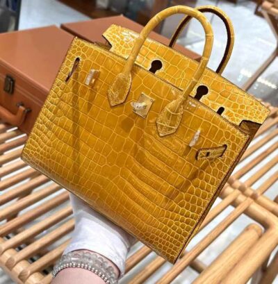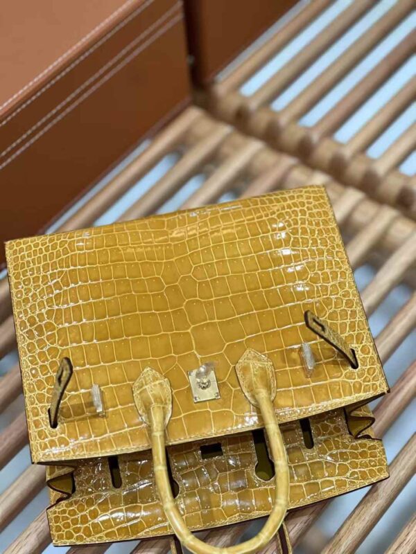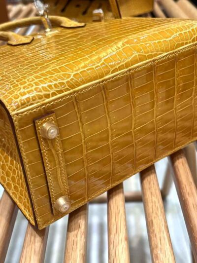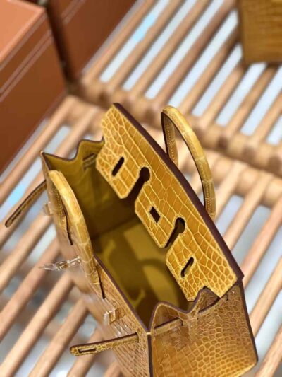Birkin 20cm Porosus Crocodile Jaune Ambre, Gold Hardware