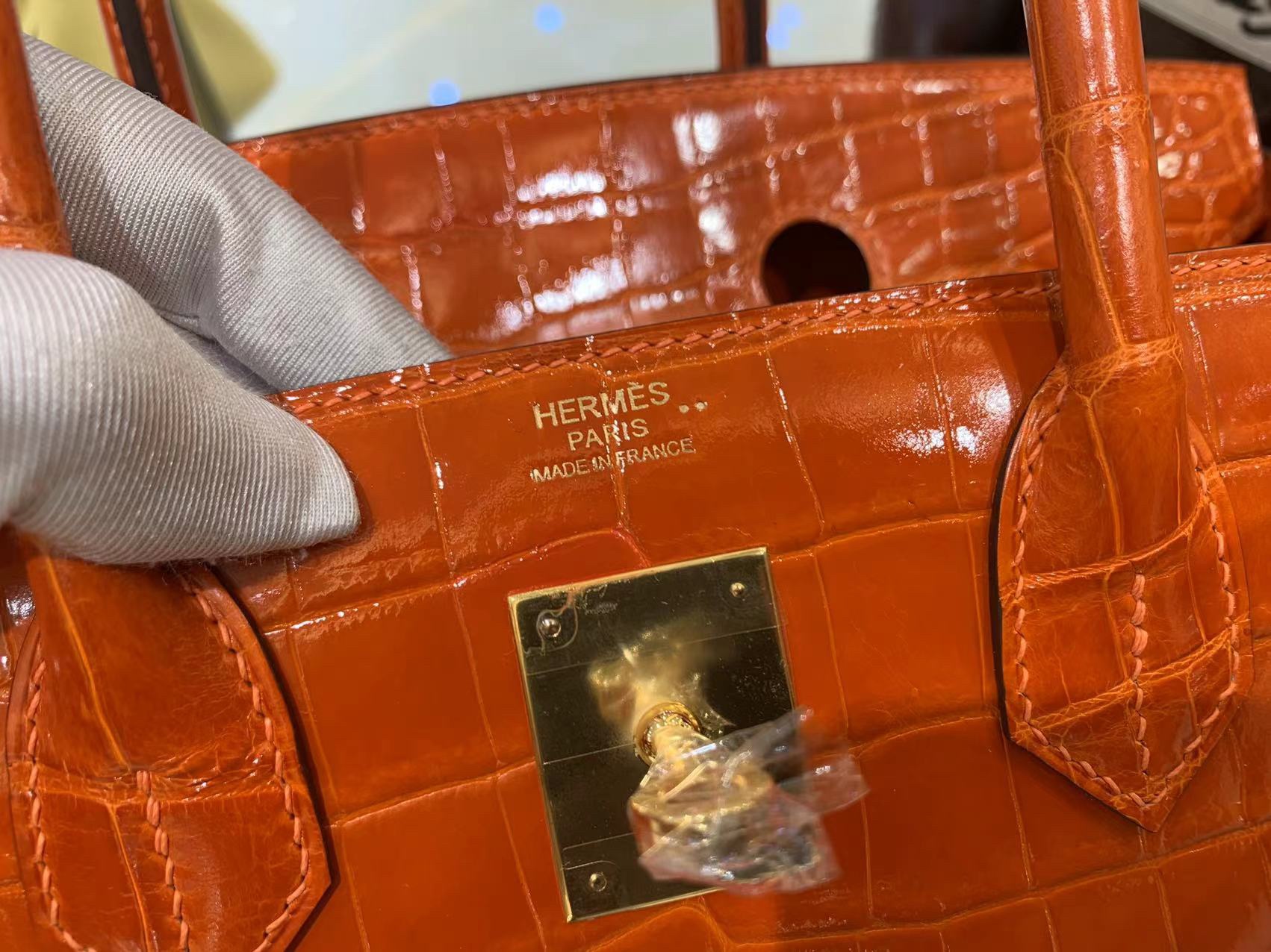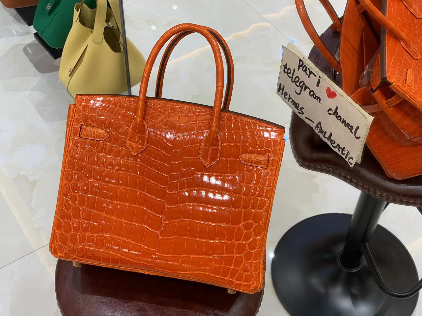 Birkin 25 in Orange Shiny Crocodile GHW
