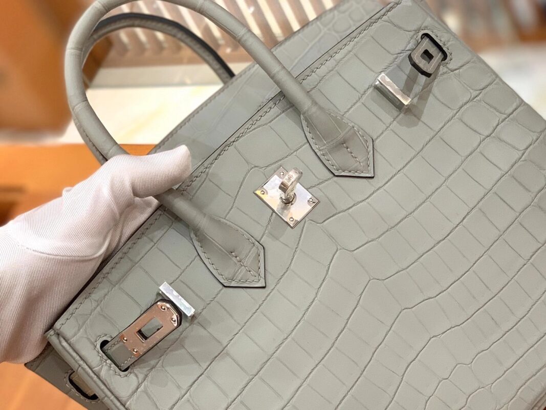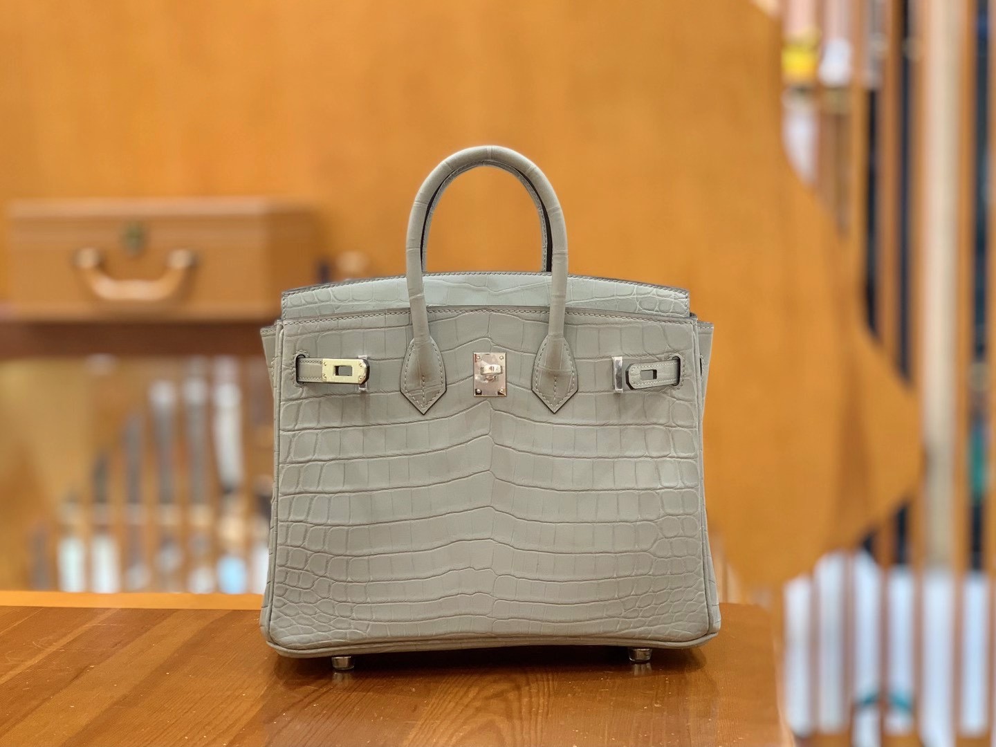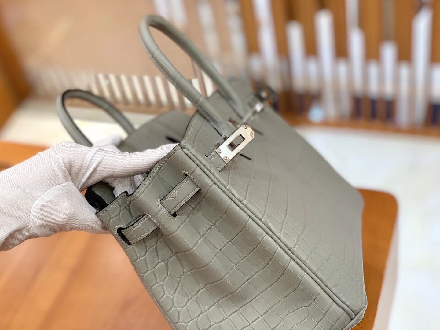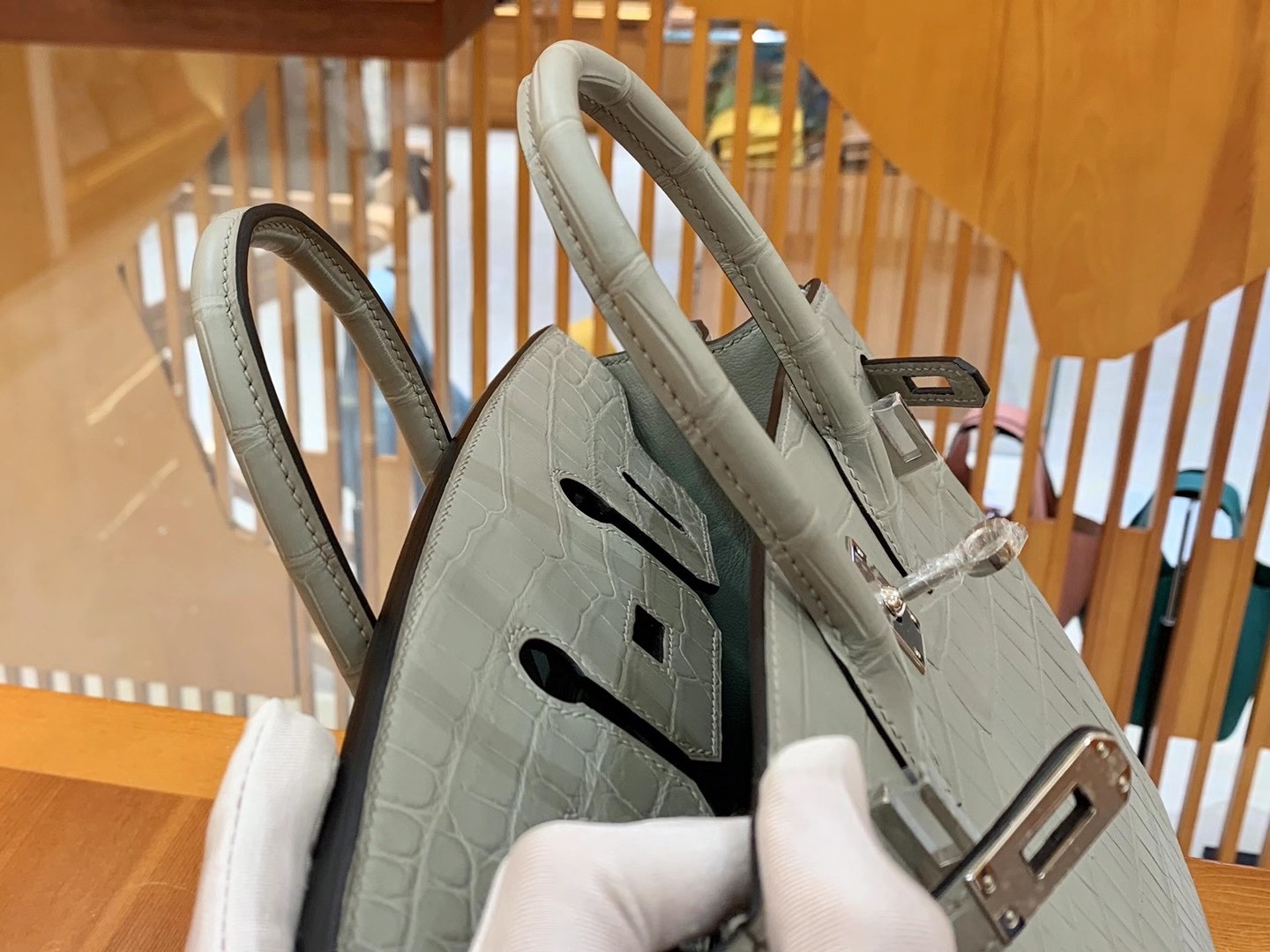 Birkin 25cm Gris Perle Silver Buckle Imported first-class Nile crocodile. All hand-sewn