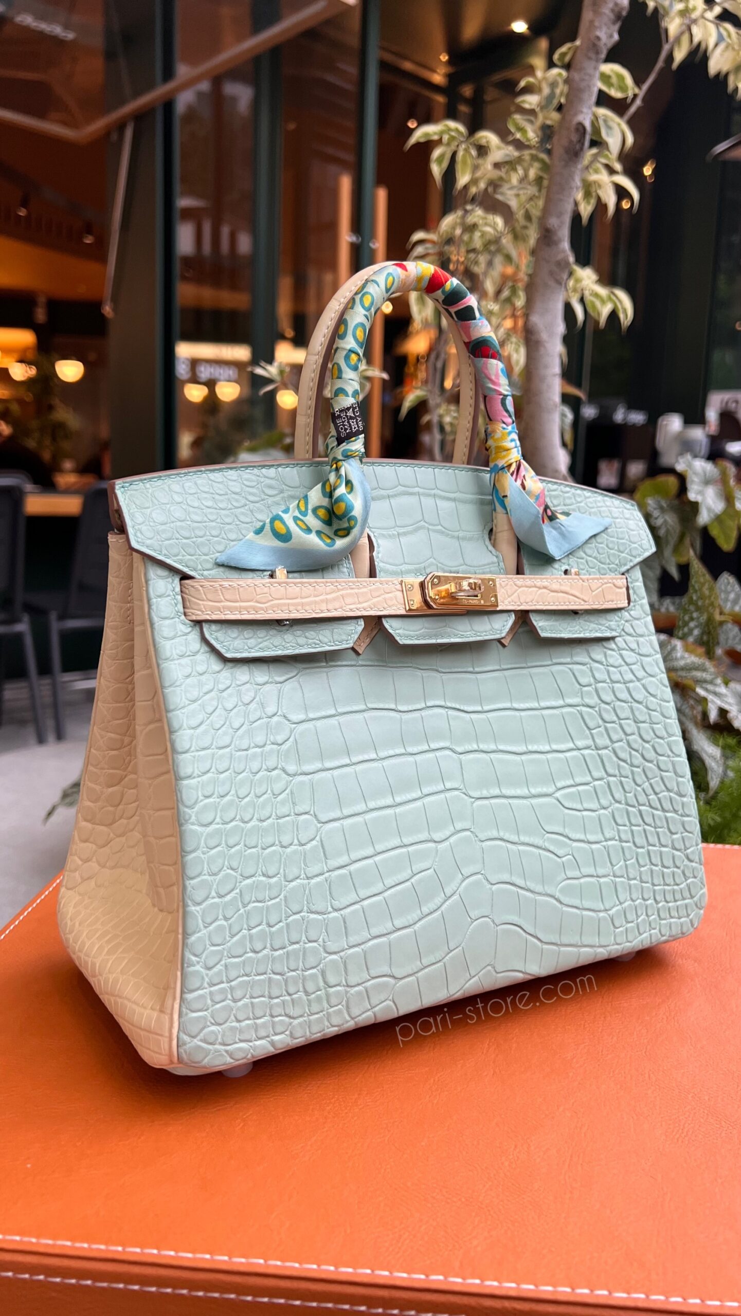 Birkin 25 Crocodile in Bleu D’Eau&Jaune Poussin