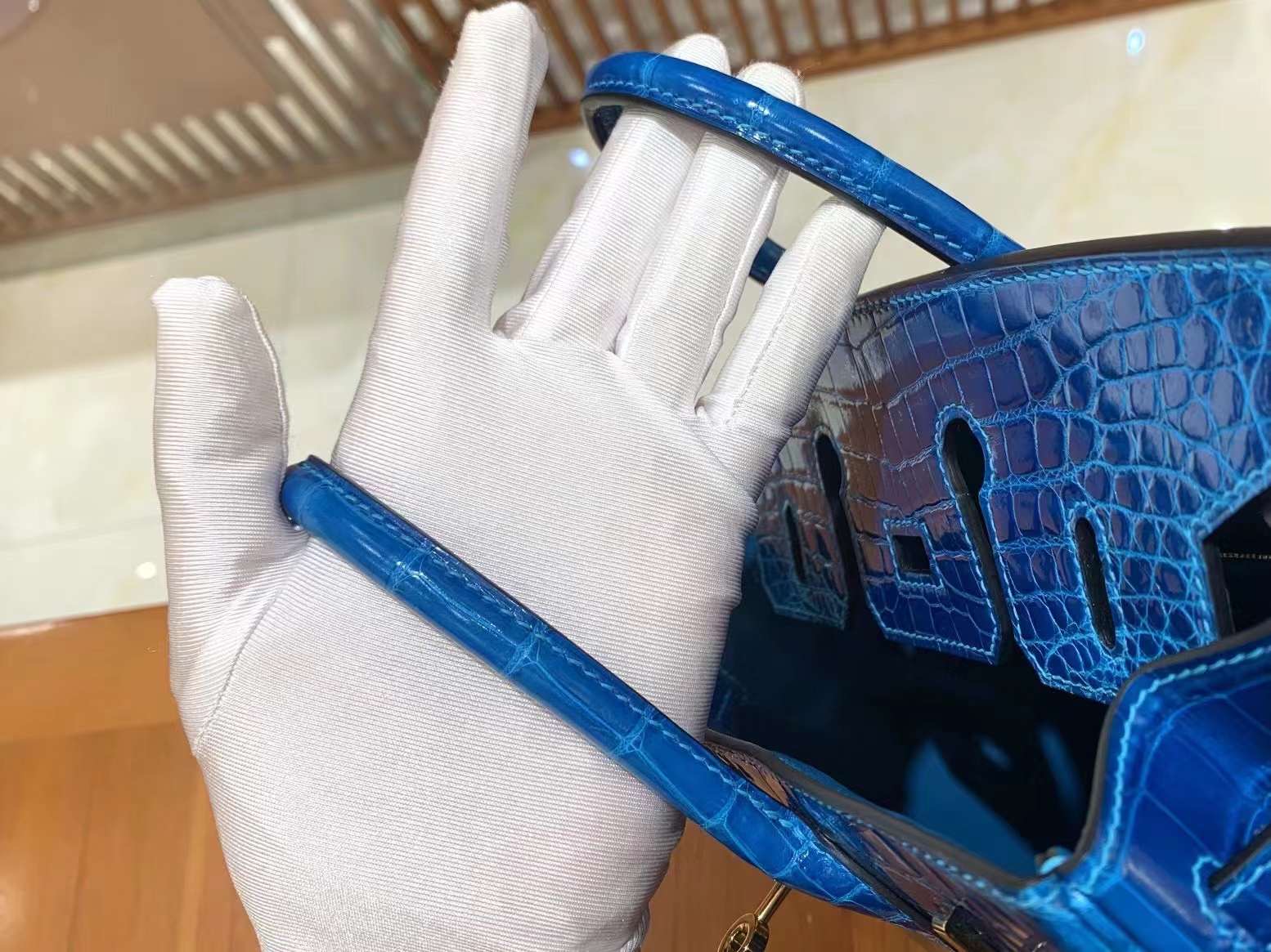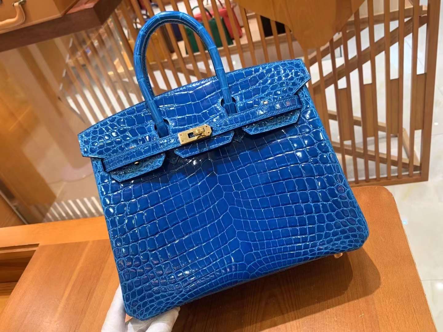 Birkin 25cm Izmir Blue Imported first-class Nile crocodile leather. French beeswax thread. 100% hand-sewn