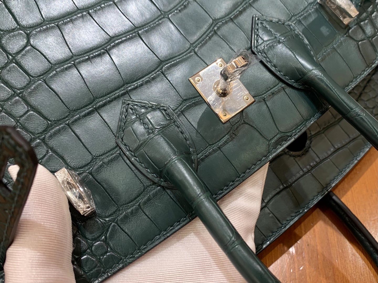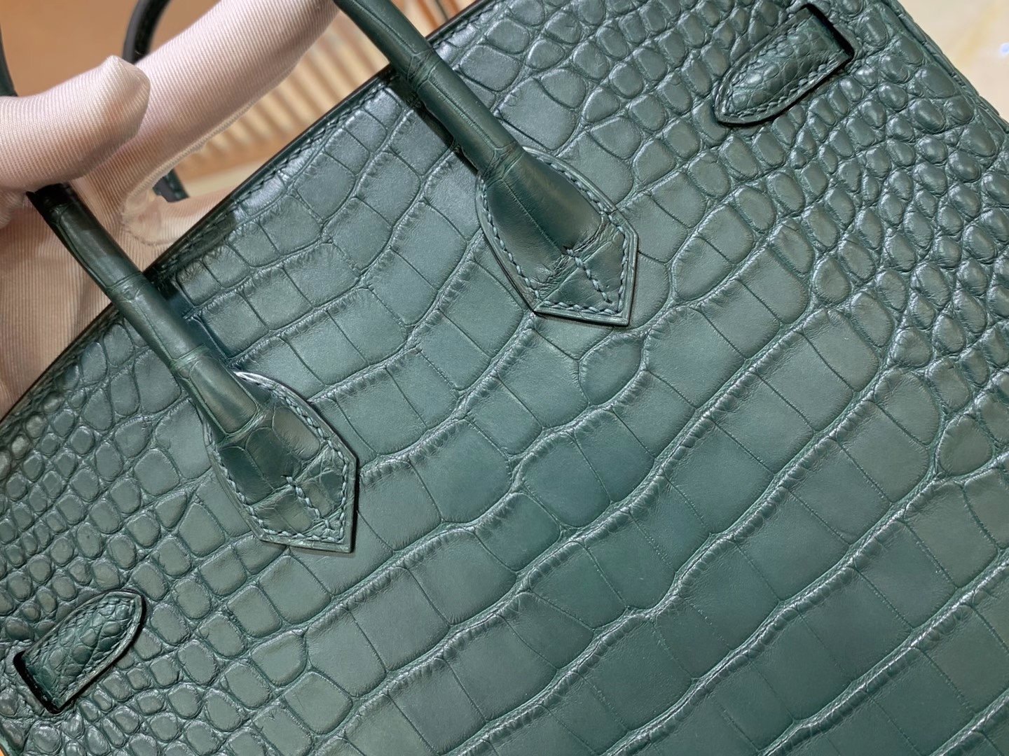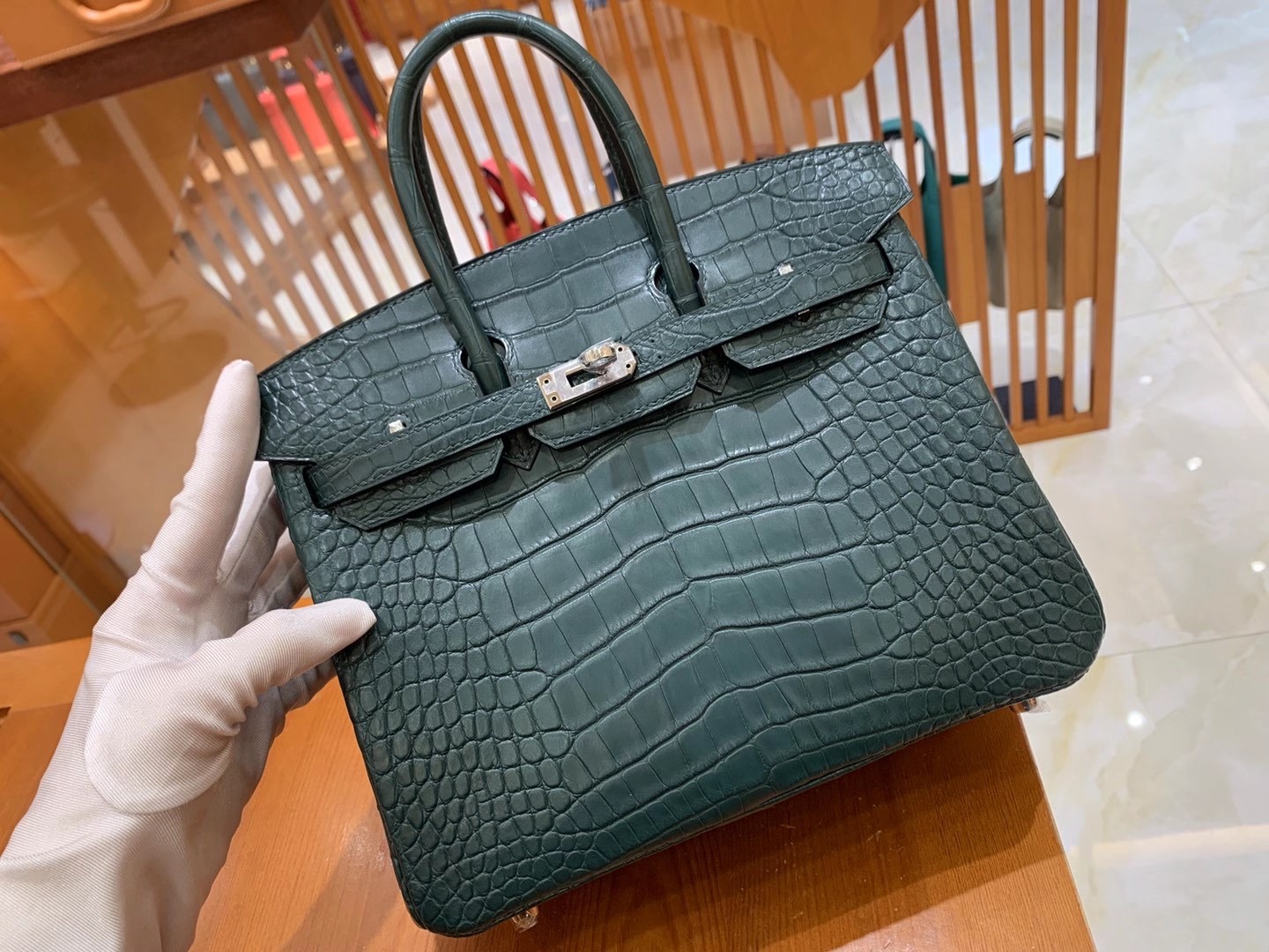 Birkin 25cm Pine Green Silver Buckle Imported first-class American crocodile. Fully hand-sewn