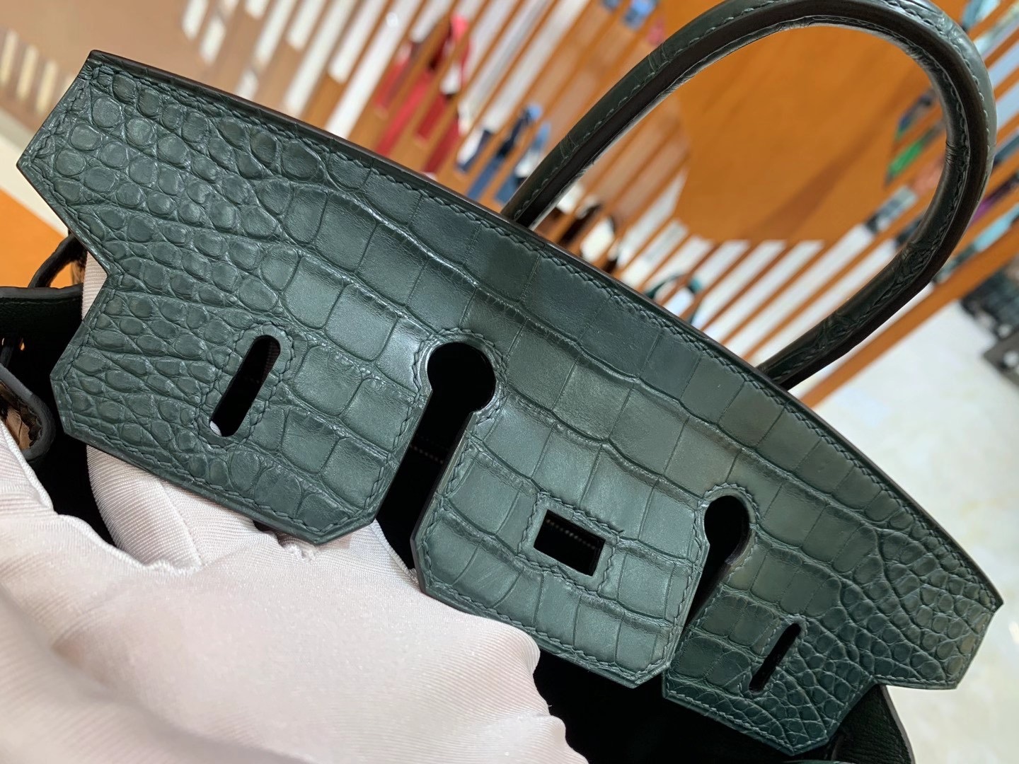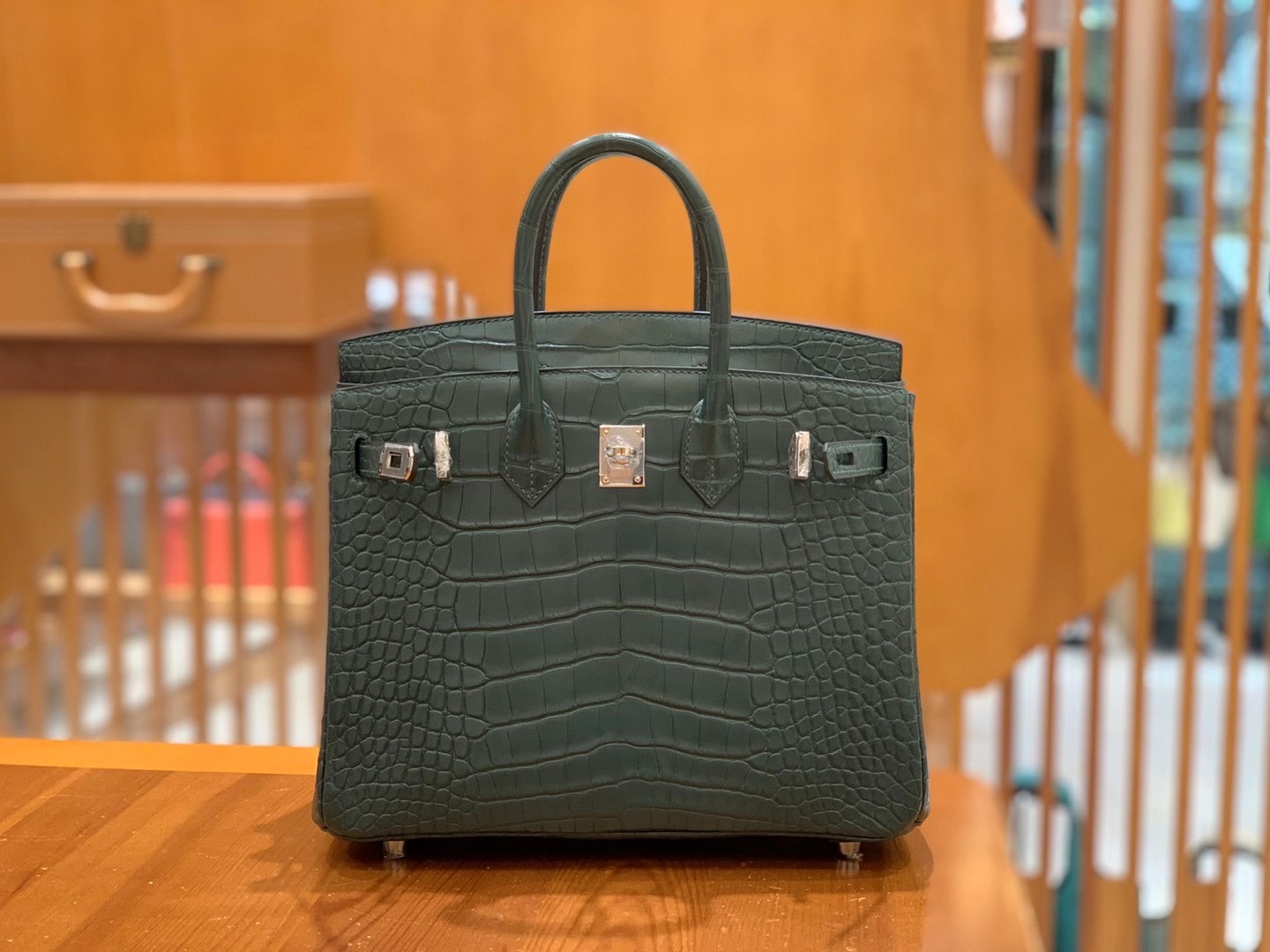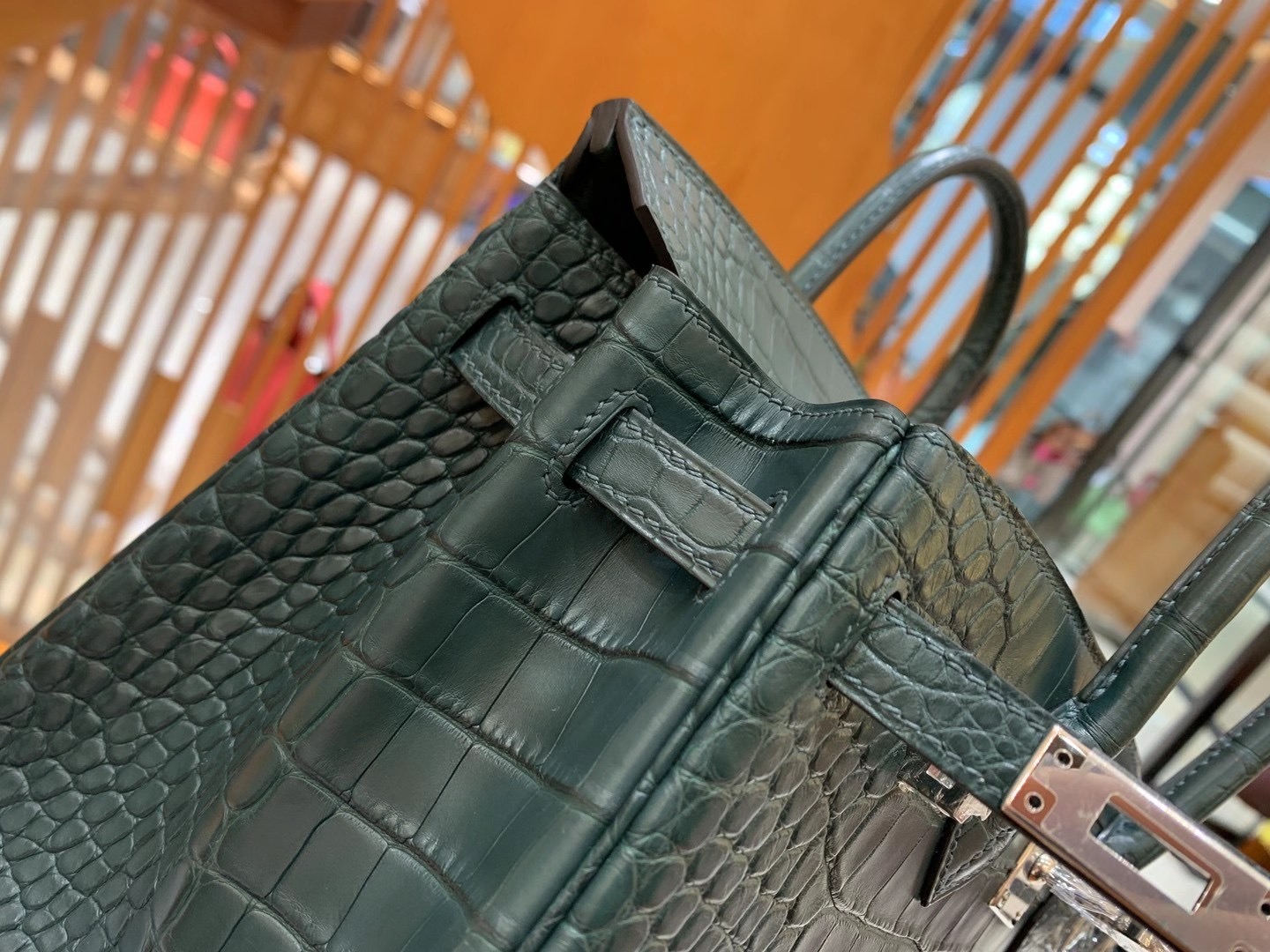 Birkin 25cm Pine Green Silver Buckle Imported first-class American crocodile. Fully hand-sewn