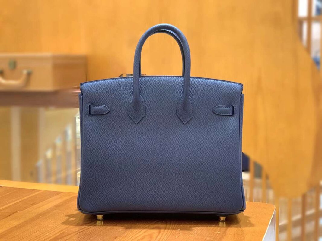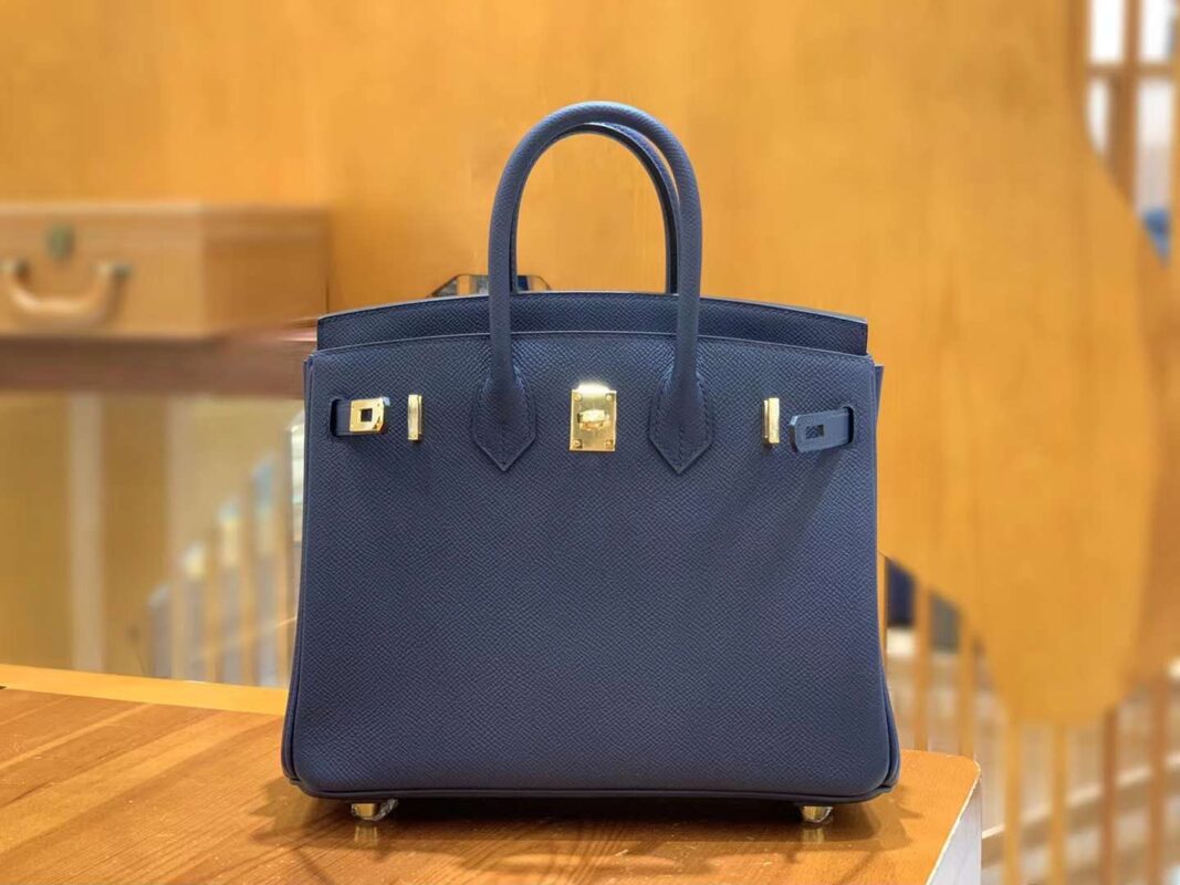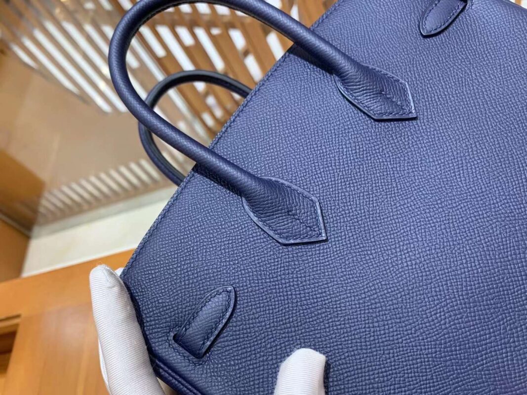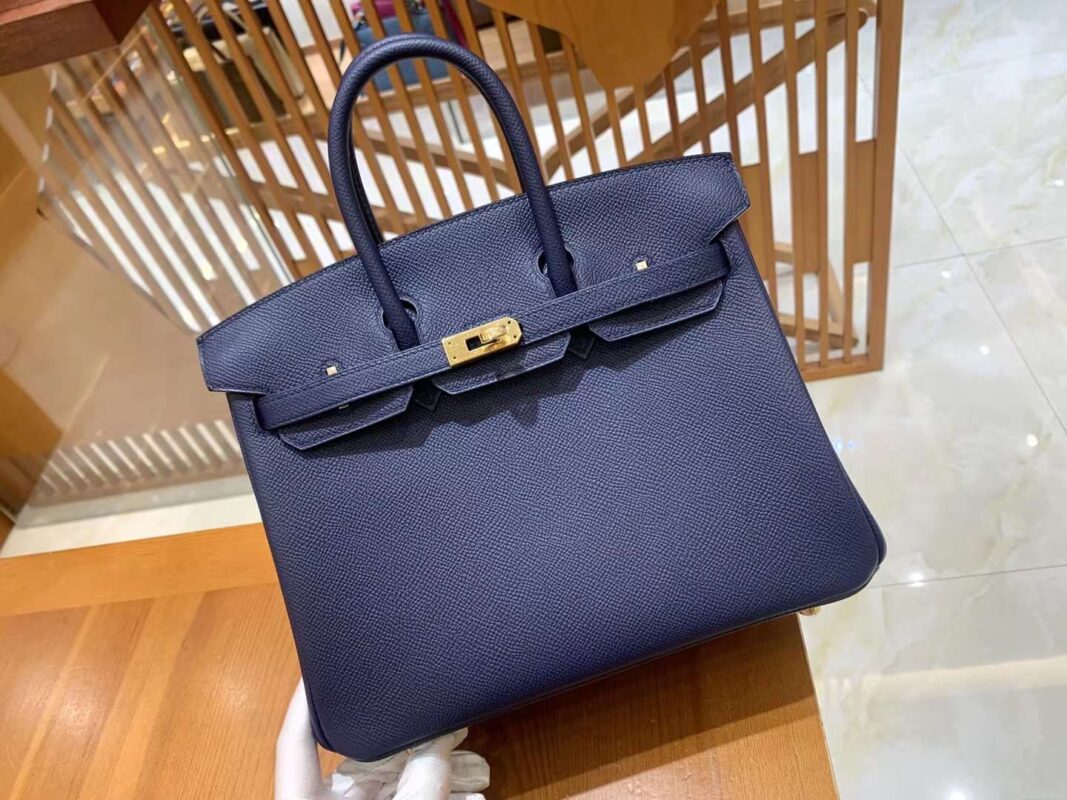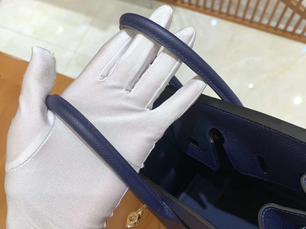 BK25cm sapphire blue gold buckle imported Epsom cowhide French original beeswax thread hand-stitched