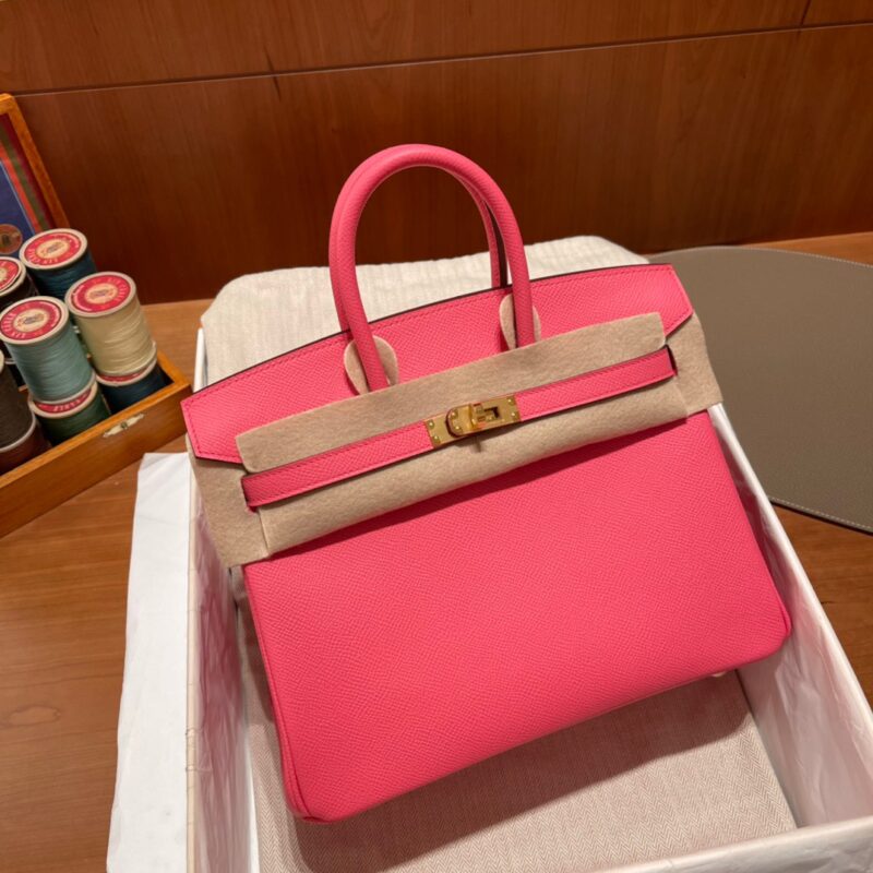 Birkin 25cm Epsom Leather. 9D Lipstick Pink Gold Buckle