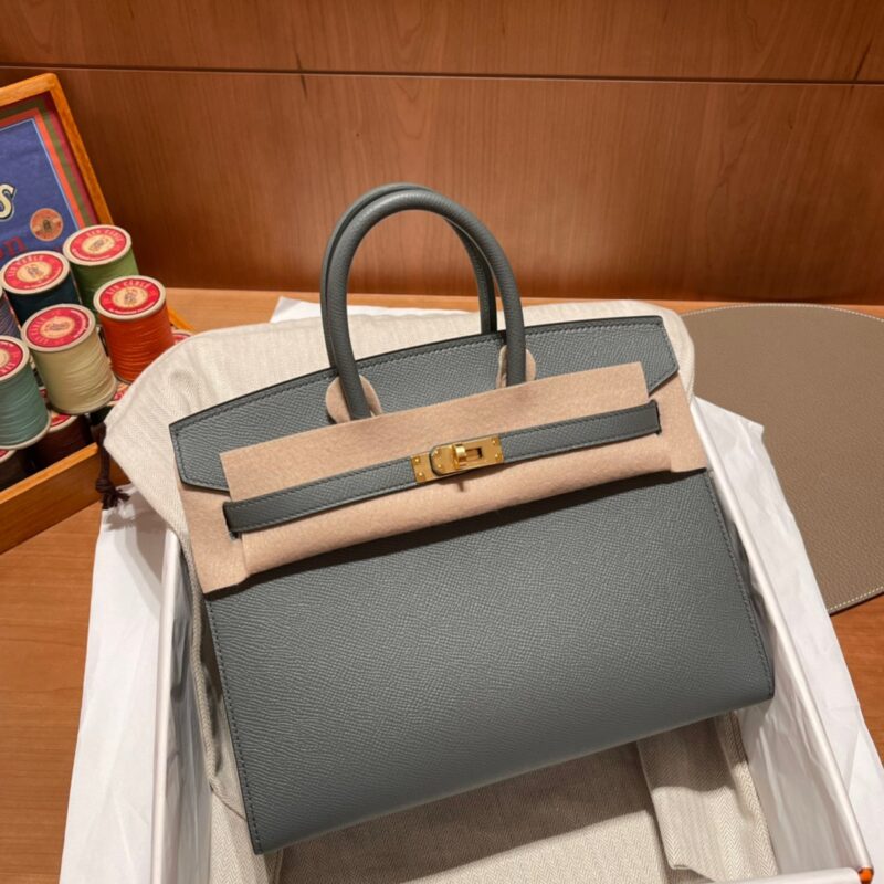 Birkin 25cm Epsom Leather 63 Vert Amande. Gold Buckle