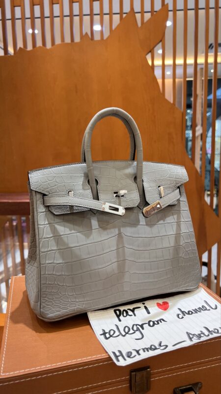 Birkin 25 in Grey Matte Crocodile PHW