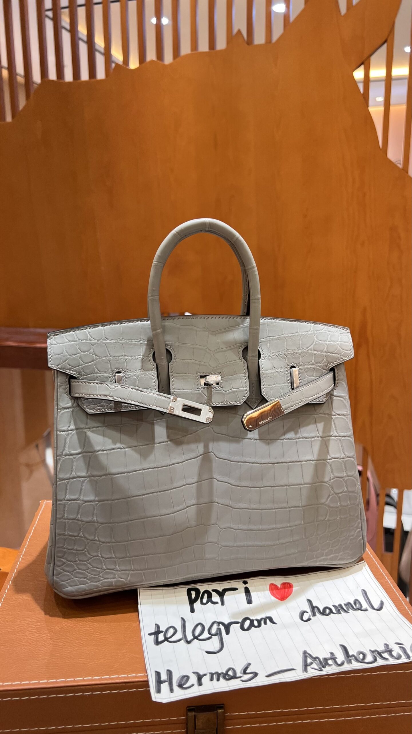 Birkin 25 in Grey Matte Crocodile PHW