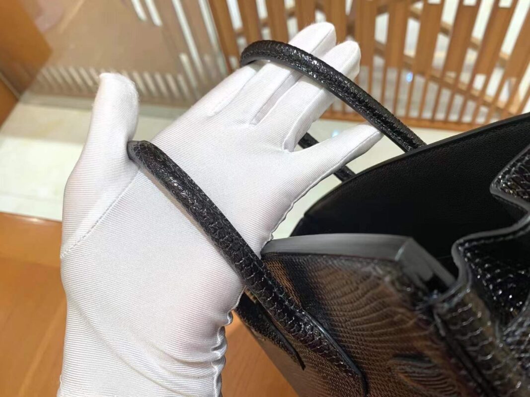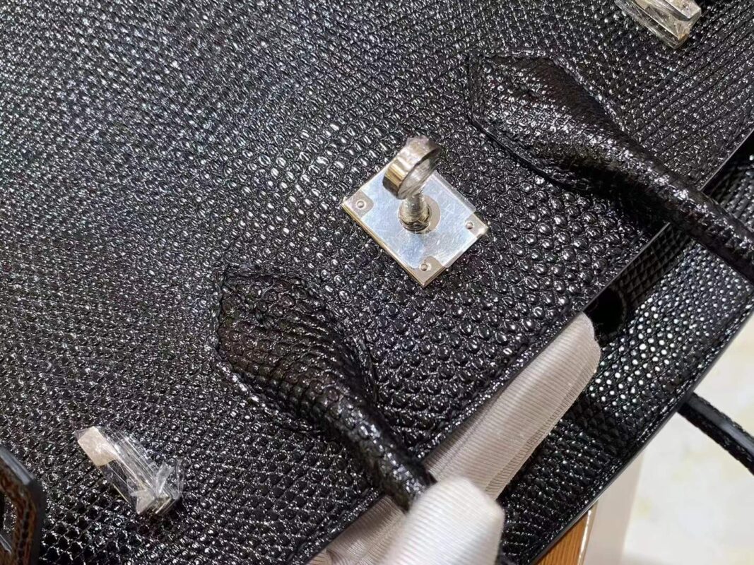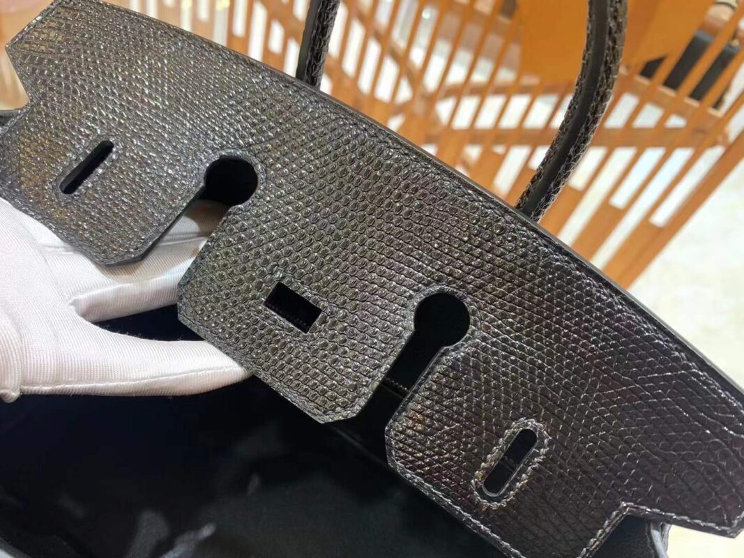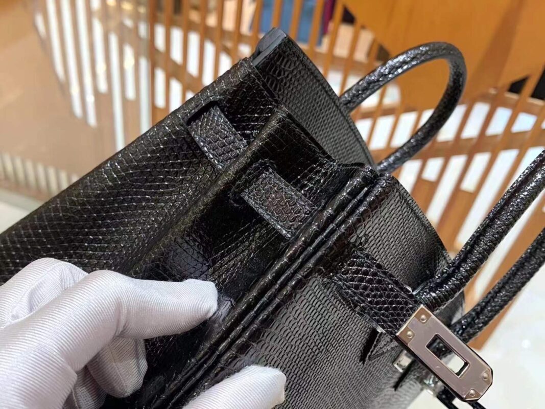 Birkin 25cm Black Silver Imported wild lizard skin. Hand-sewn