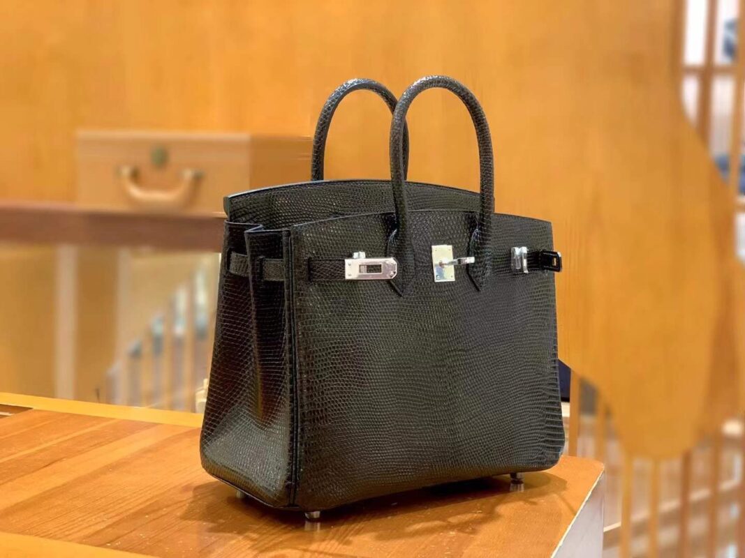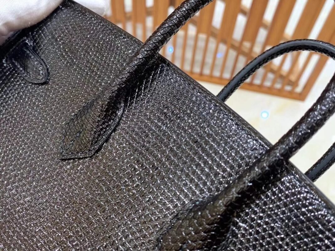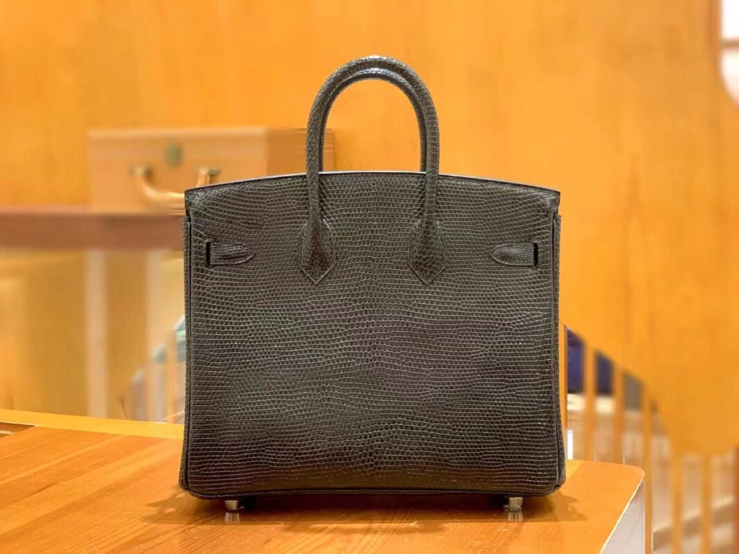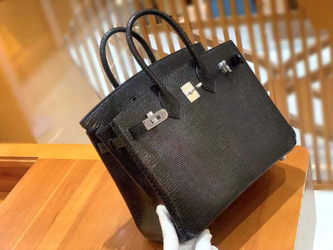 Birkin 25cm Black Silver Imported wild lizard skin. Hand-sewn