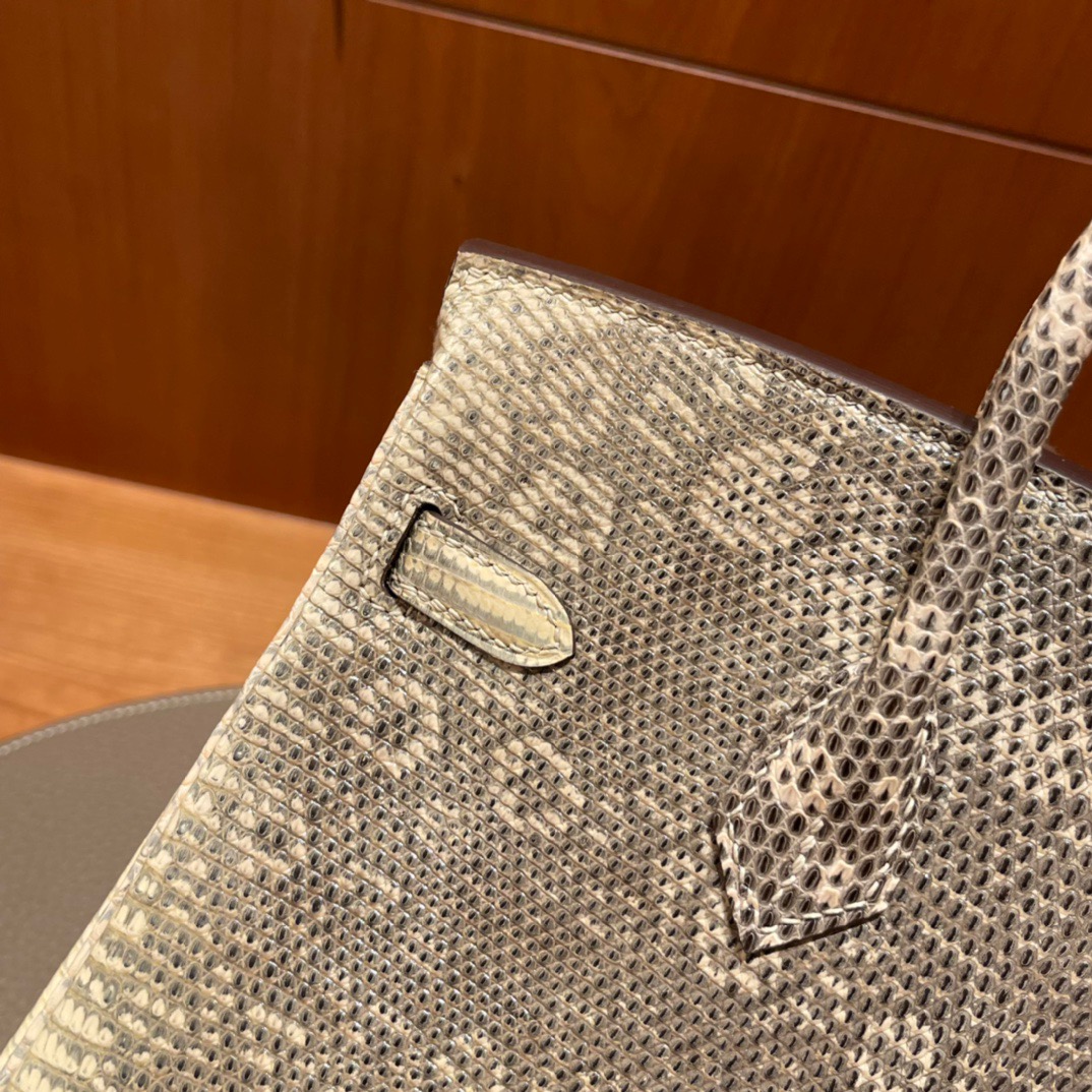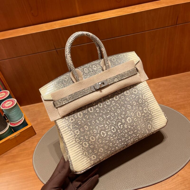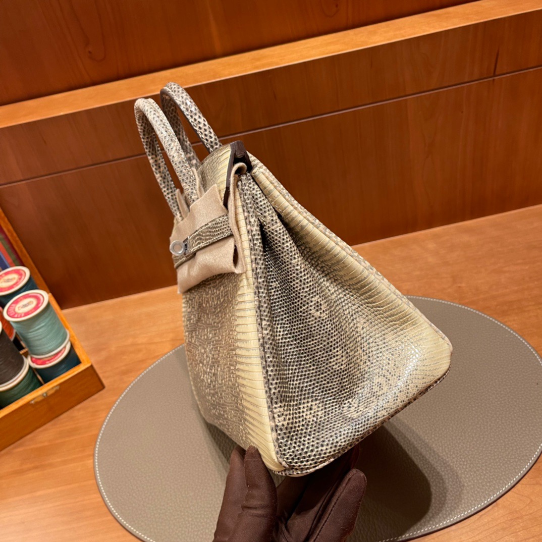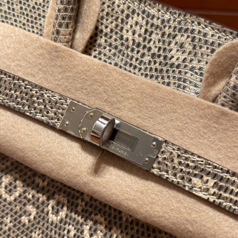 Birkin 25cm Lizard leather. 1B Natural Color. Small Himalayan Saxon Monitor Lizard. Carved Two Bars Spot
