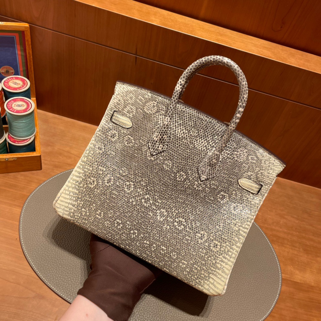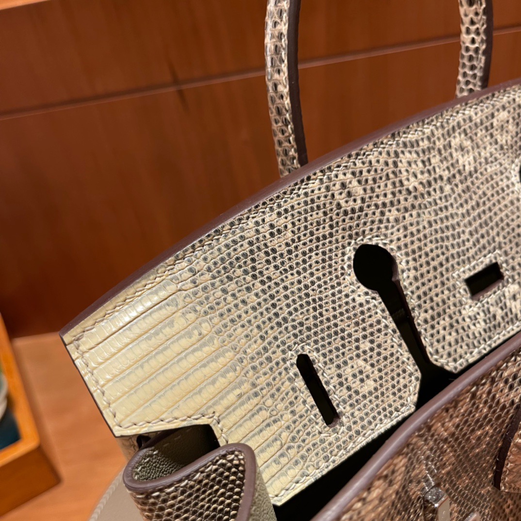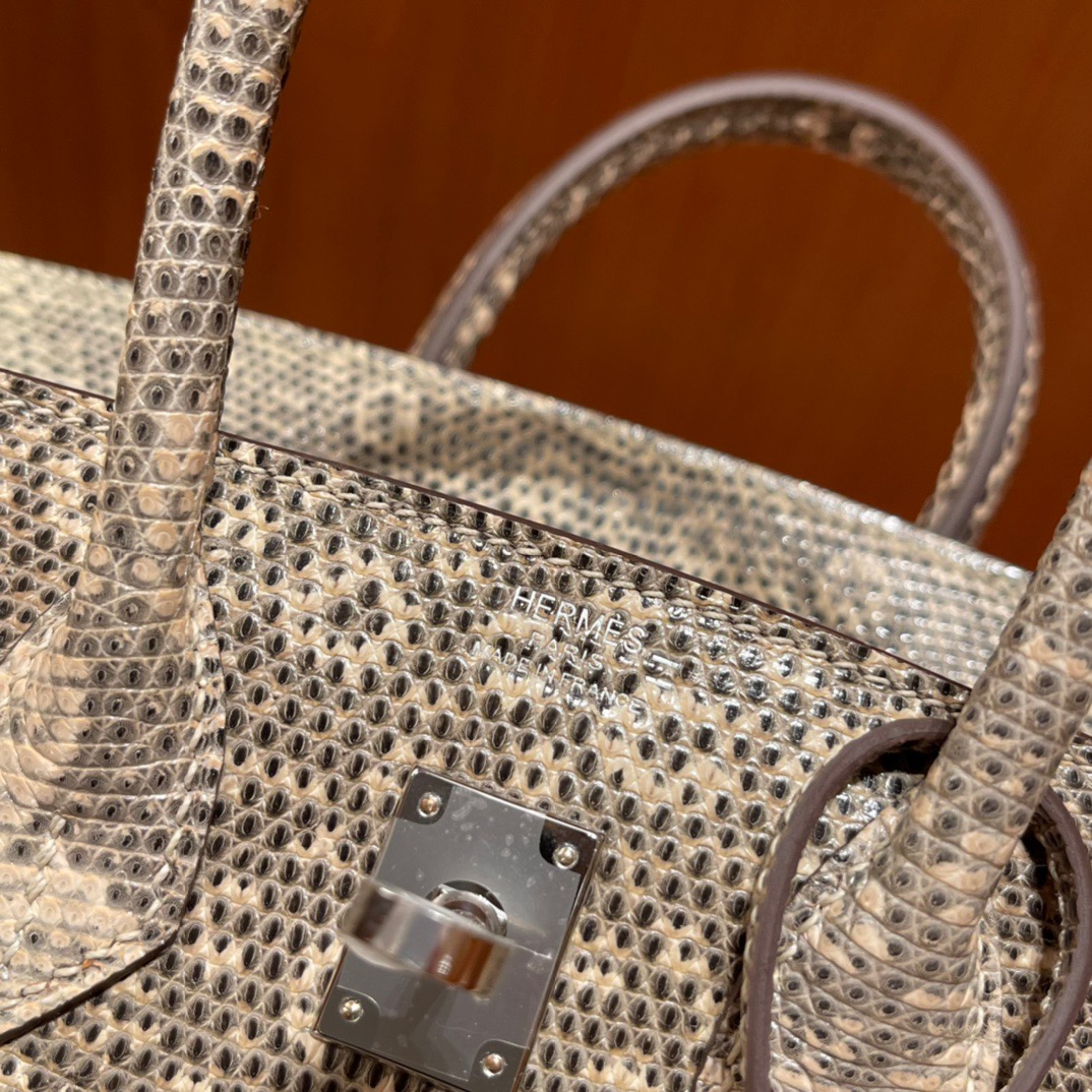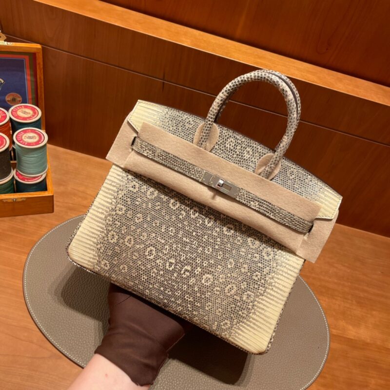Birkin 25cm Lizard leather. 1B Natural Color. Small Himalayan Saxon Monitor Lizard. Carved Two Bars Spot