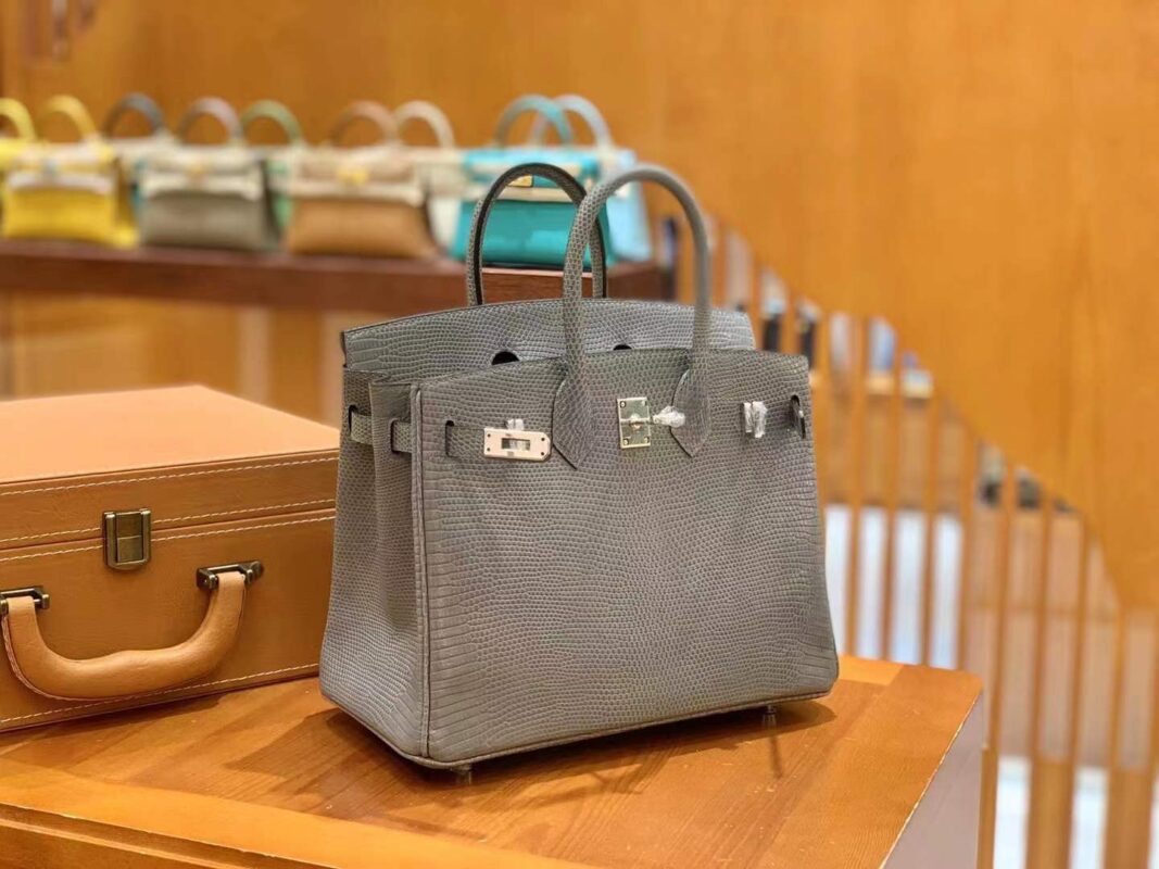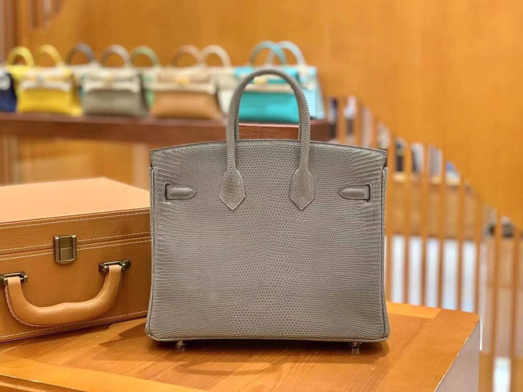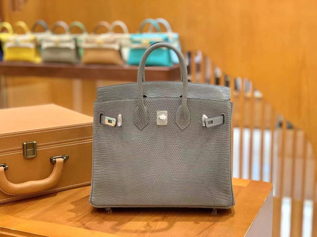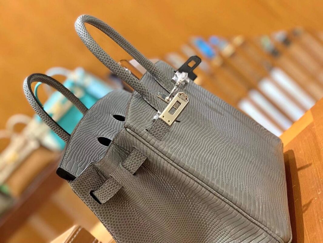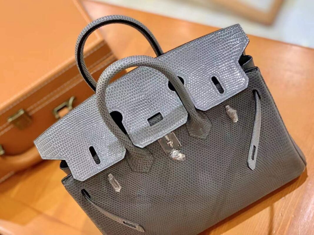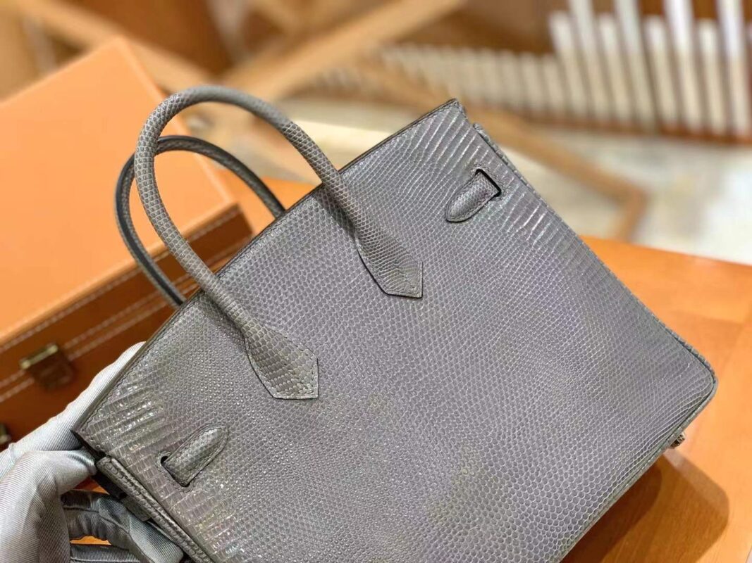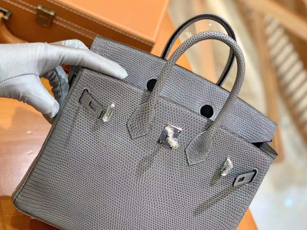 Birkin 25cm Paris Grey Imported wild lizard skin. Hand-sewn