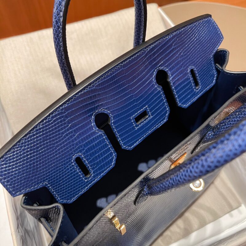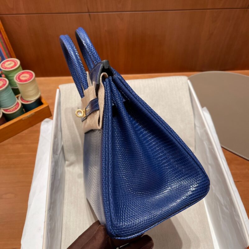 Birkin 25cm Lizard leather. 73 Sapphire Blue. Gold Buckle