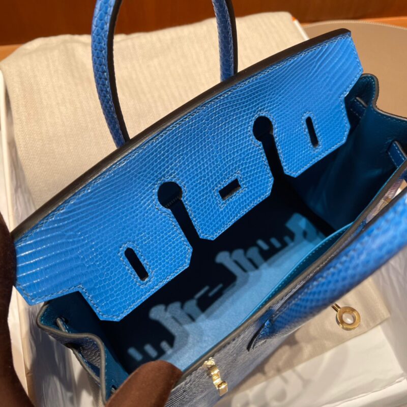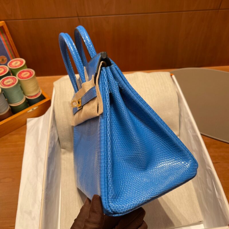 Birkin 25cm Lizard leather. 7Q Sea Blue. Gold Buckle