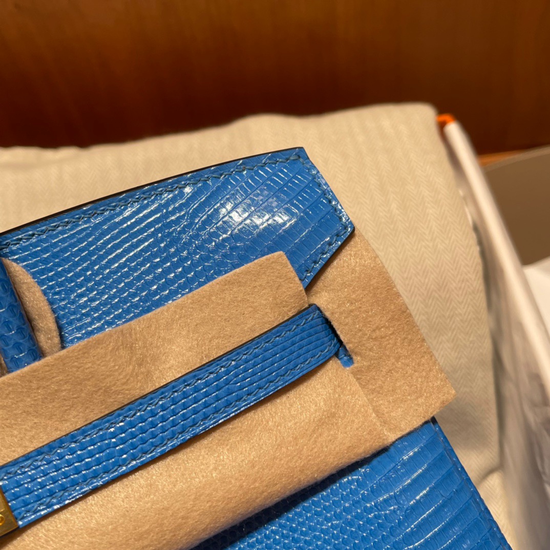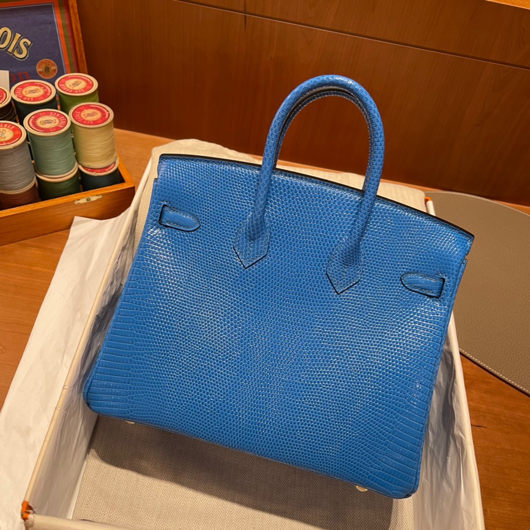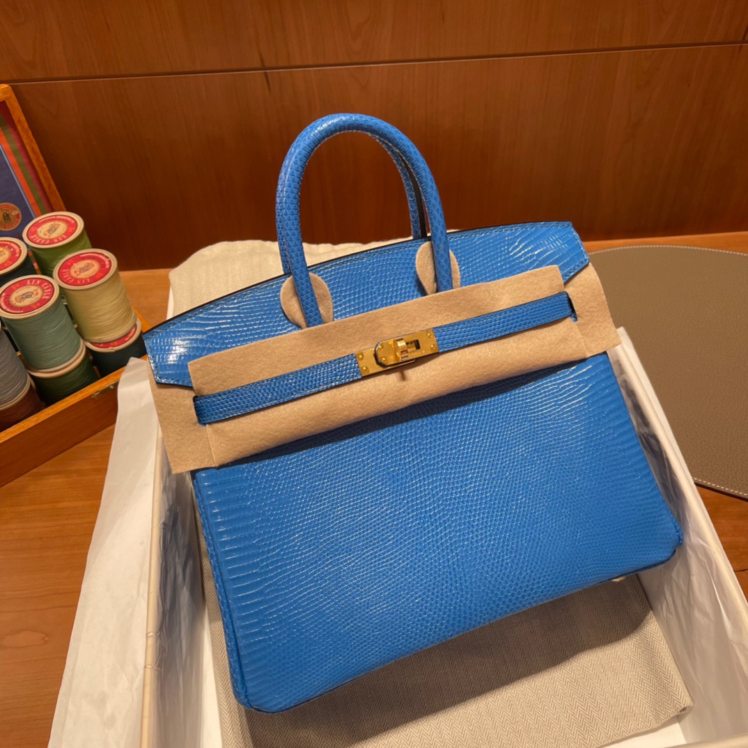 Birkin 25cm Lizard leather. 7Q Sea Blue. Gold Buckle